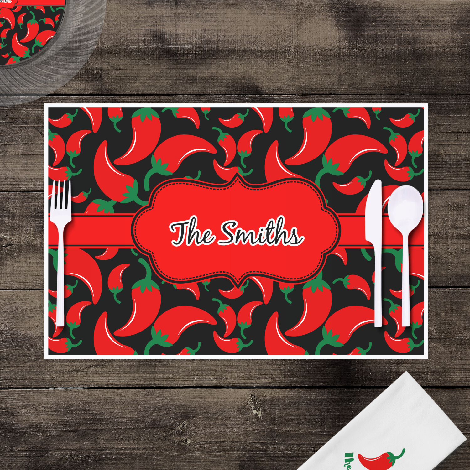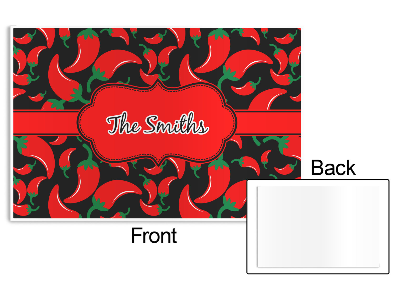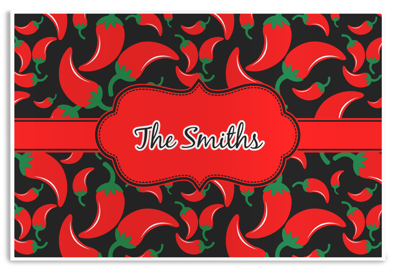 The chili peppers design is part of our fruits and vegetable collection. This design features red chili peppers in various sizes on a black background. The background can be changed to any color. I would recommend trying our white, gray, gold, teal or purple color as background choices.