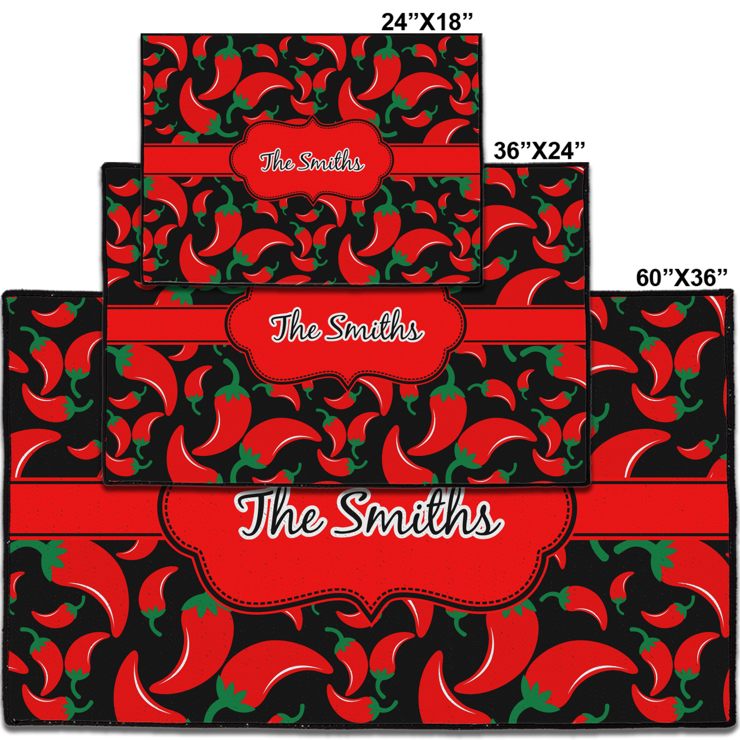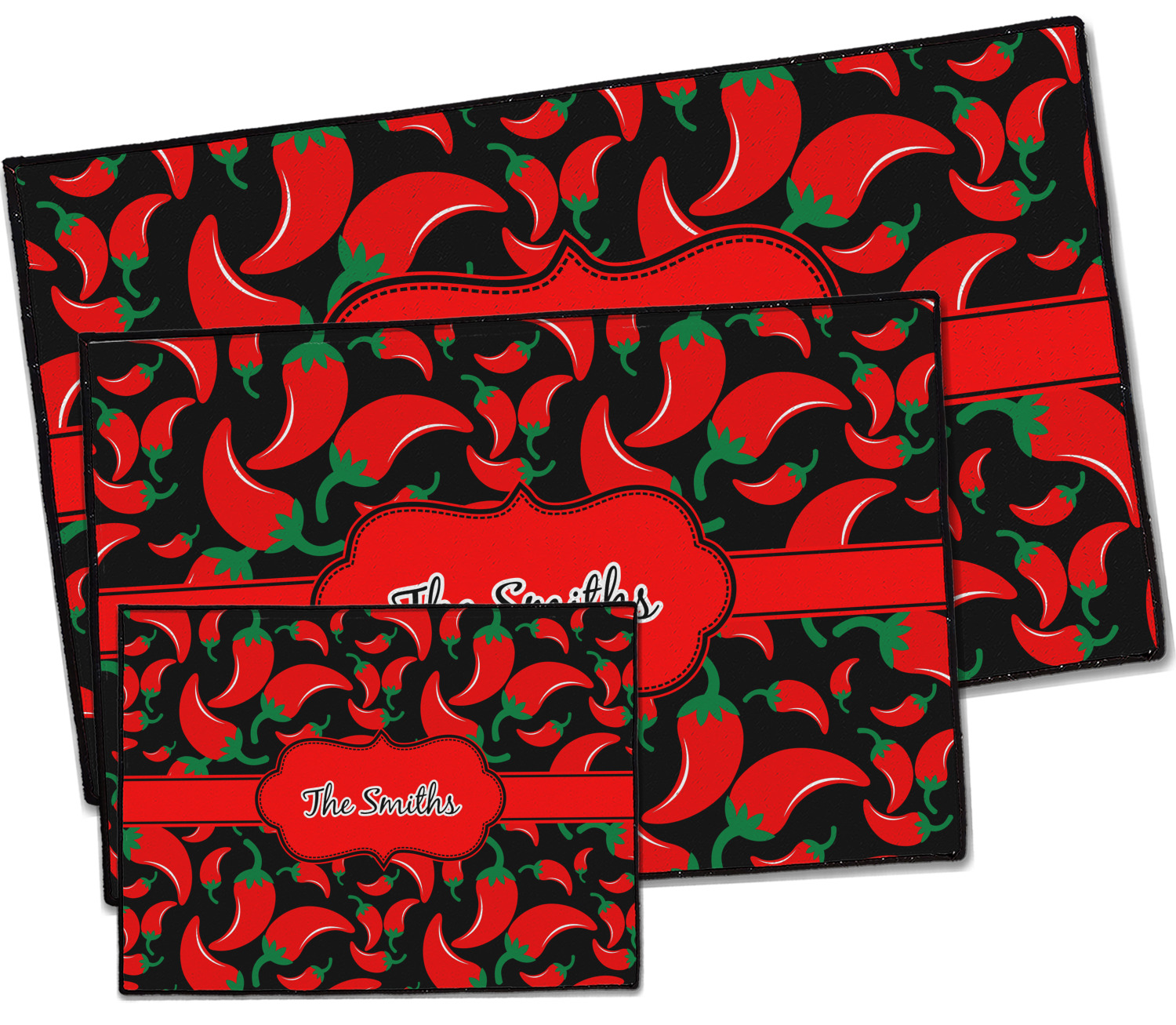 The chili peppers design is part of our fruits and vegetable collection. This design features red chili peppers in various sizes on a black background. The background can be changed to any color. I would recommend trying our white, gray, gold, teal or purple color as background choices.