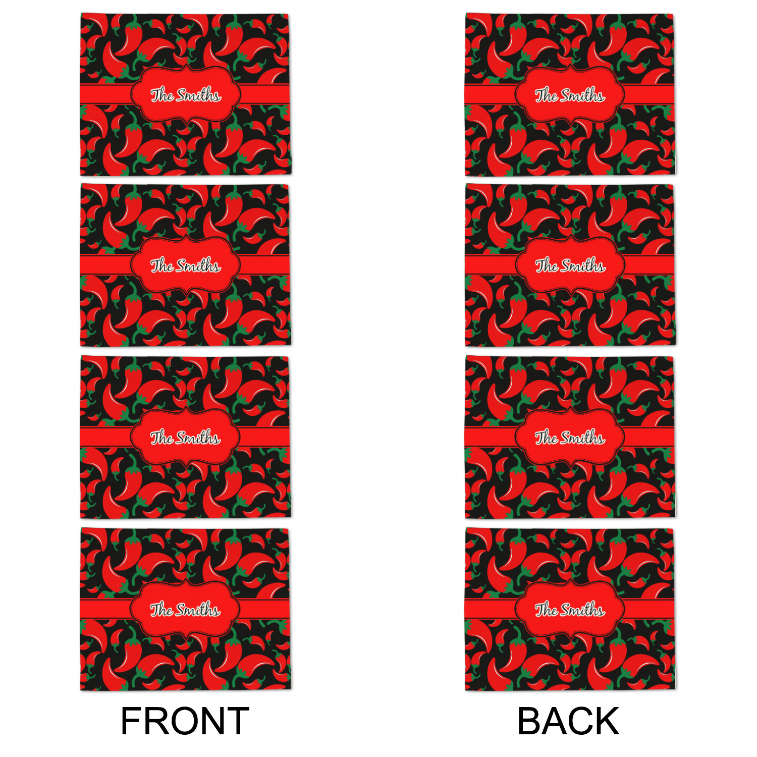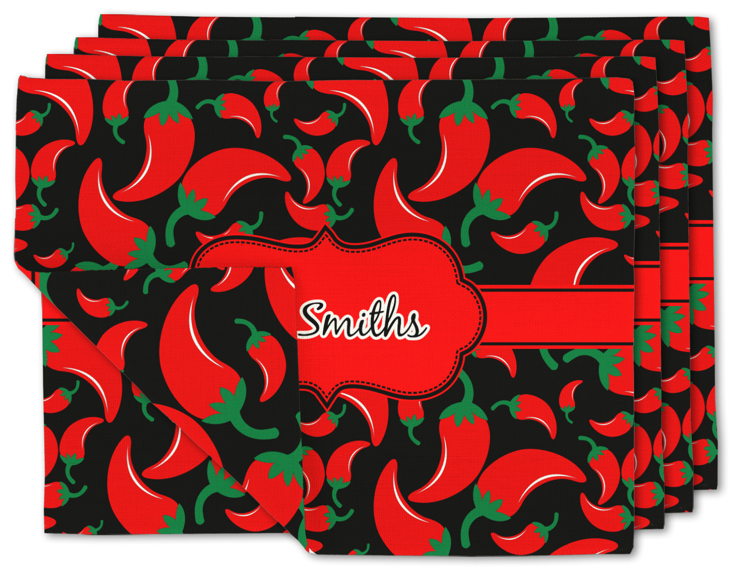 The chili peppers design is part of our fruits and vegetable collection. This design features red chili peppers in various sizes on a black background. The background can be changed to any color. I would recommend trying our white, gray, gold, teal or purple color as background choices.