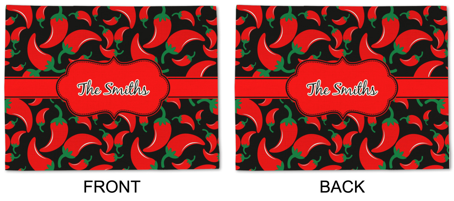 The chili peppers design is part of our fruits and vegetable collection. This design features red chili peppers in various sizes on a black background. The background can be changed to any color. I would recommend trying our white, gray, gold, teal or purple color as background choices.