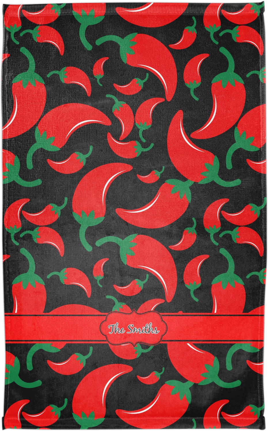 The chili peppers design is part of our fruits and vegetable collection. This design features red chili peppers in various sizes on a black background. The background can be changed to any color. I would recommend trying our white, gray, gold, teal or purple color as background choices.