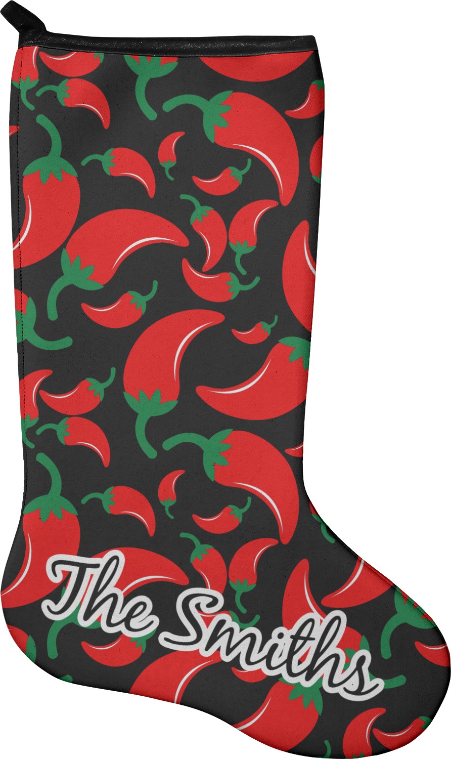 These 17" x 11" stockings are made of neoprene and have a black trim to give them a fantastic finished look. Your very own design is printed right onto the stocking, either single sided with white on the back or double sided where can use the same or different designs / patterns on the front and the back - the choice is yours. At the top of the stocking is a 2" loop for hanging.