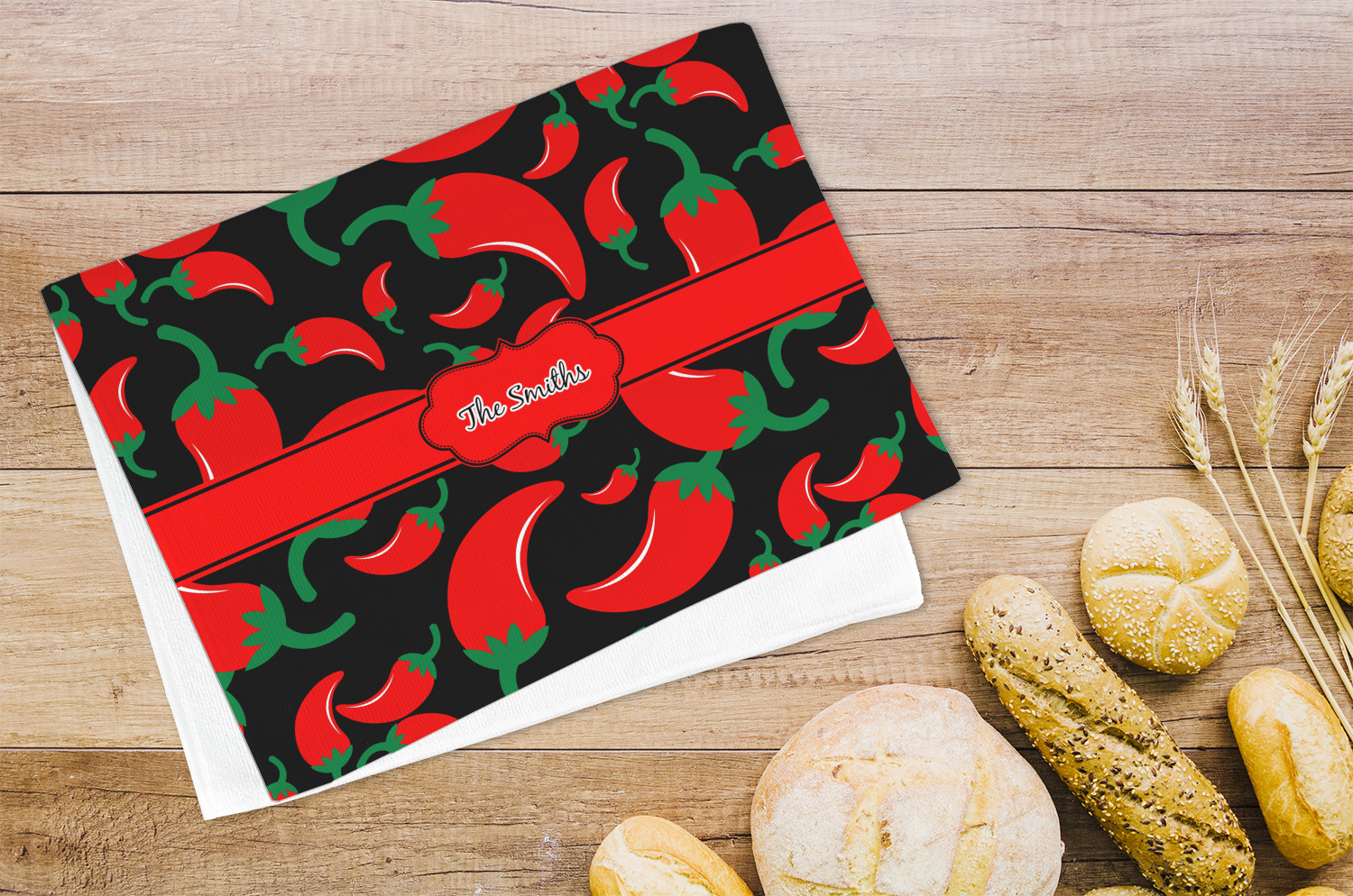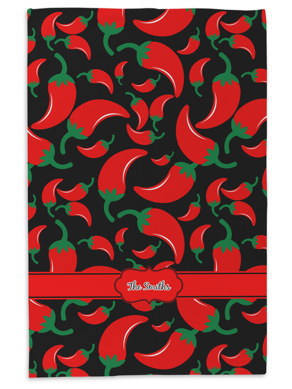 The chili peppers design is part of our fruits and vegetable collection. This design features red chili peppers in various sizes on a black background. The background can be changed to any color. I would recommend trying our white, gray, gold, teal or purple color as background choices.