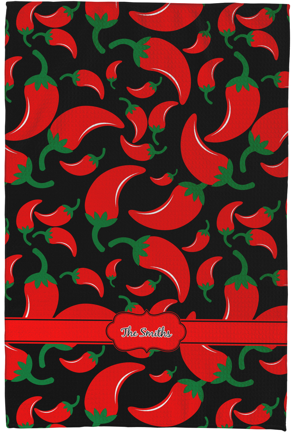The chili peppers design is part of our fruits and vegetable collection. This design features red chili peppers in various sizes on a black background. The background can be changed to any color. I would recommend trying our white, gray, gold, teal or purple color as background choices.