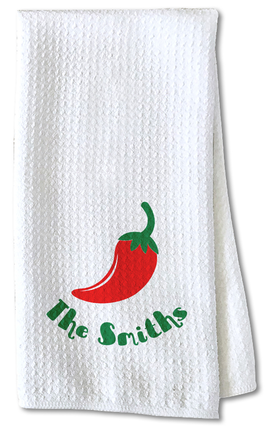 Each waffle weave kitchen towel is approximately 16 x 24 inches with your design printed on one side and the back is white.