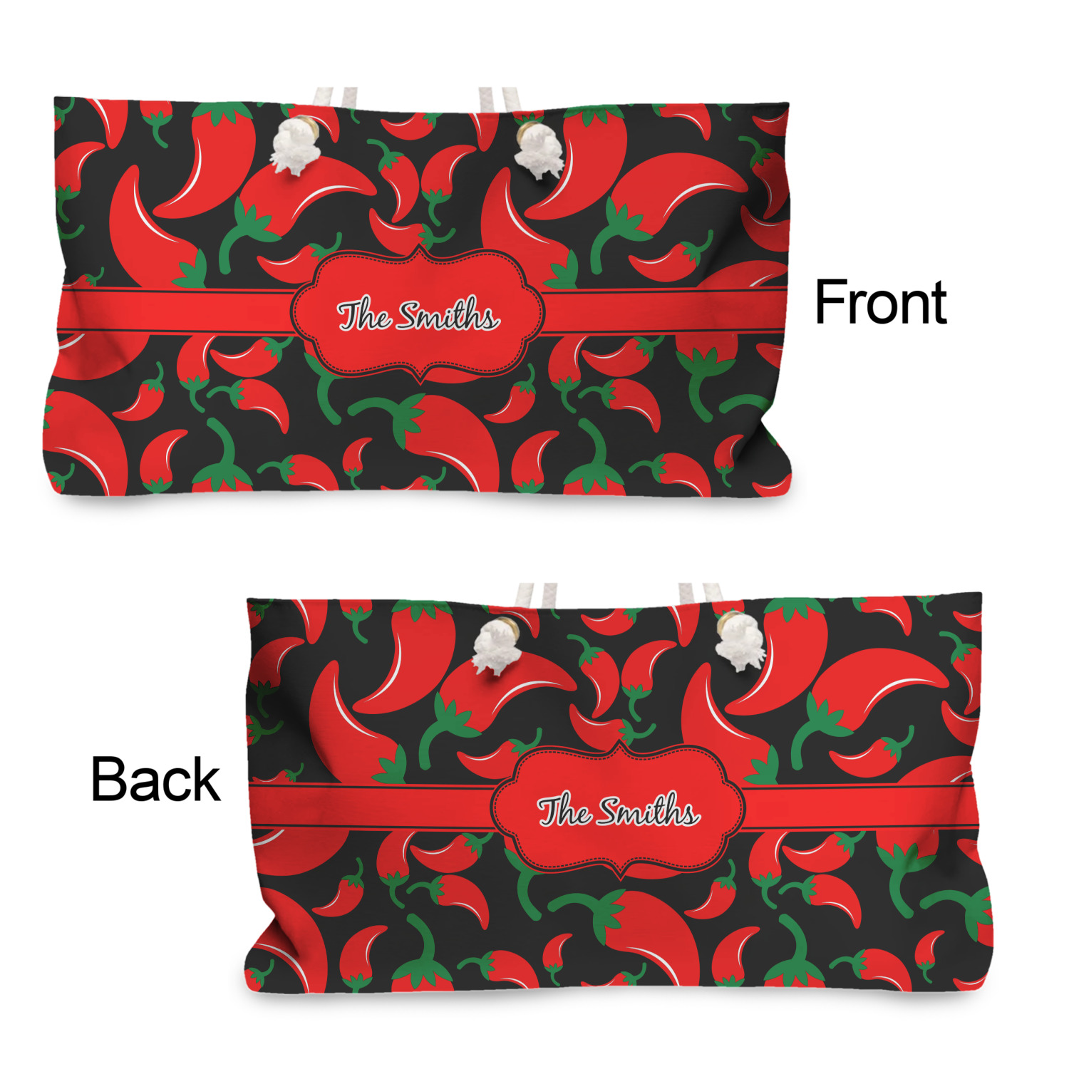 These weekender totes can be customized front and back. The totes are full all over print - so the choice of how background are endless - from beautiful floral or leaf patterns to geometrics or some classic Van Gogh artwork - the possibilities are endless. The totes can also be decorated with photos and logos.