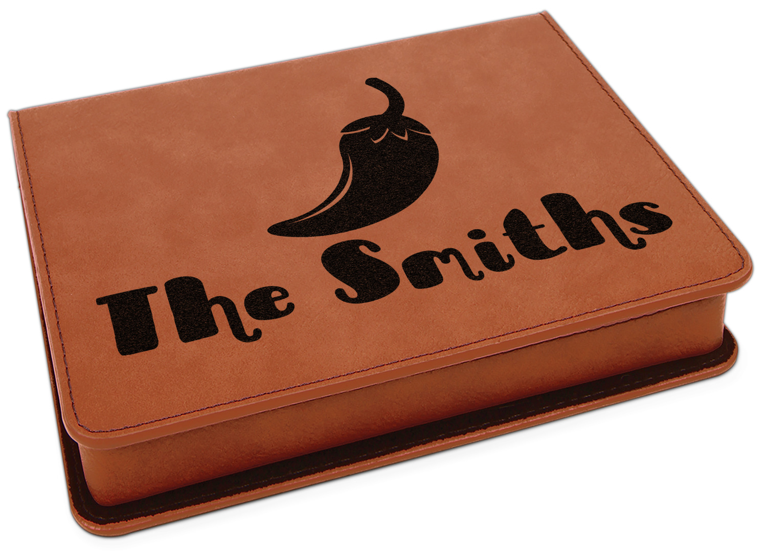 This set includes a wine stopper, pourer, drip ring, and a corkscrew! The exterior of the box is a gorgeous, cognac-brown leatherette, while the interior is covered in a black, velvety material. Four foam indentations, unique to the shape of the wine tool, are found at the bottom half of the box's interior. The tools fit snugly into each of their designated spots, and the foam material helps to protect the integrity of your tools. Each of the wine gadgets features a bamboo accent, with the location and style depending on the tool itself. We laser engrave your personalized design onto the lid of the box, which easily flips open and is secured closed by a small magnet. The wine accessories box measures at 7 by 5.5 inches in total.