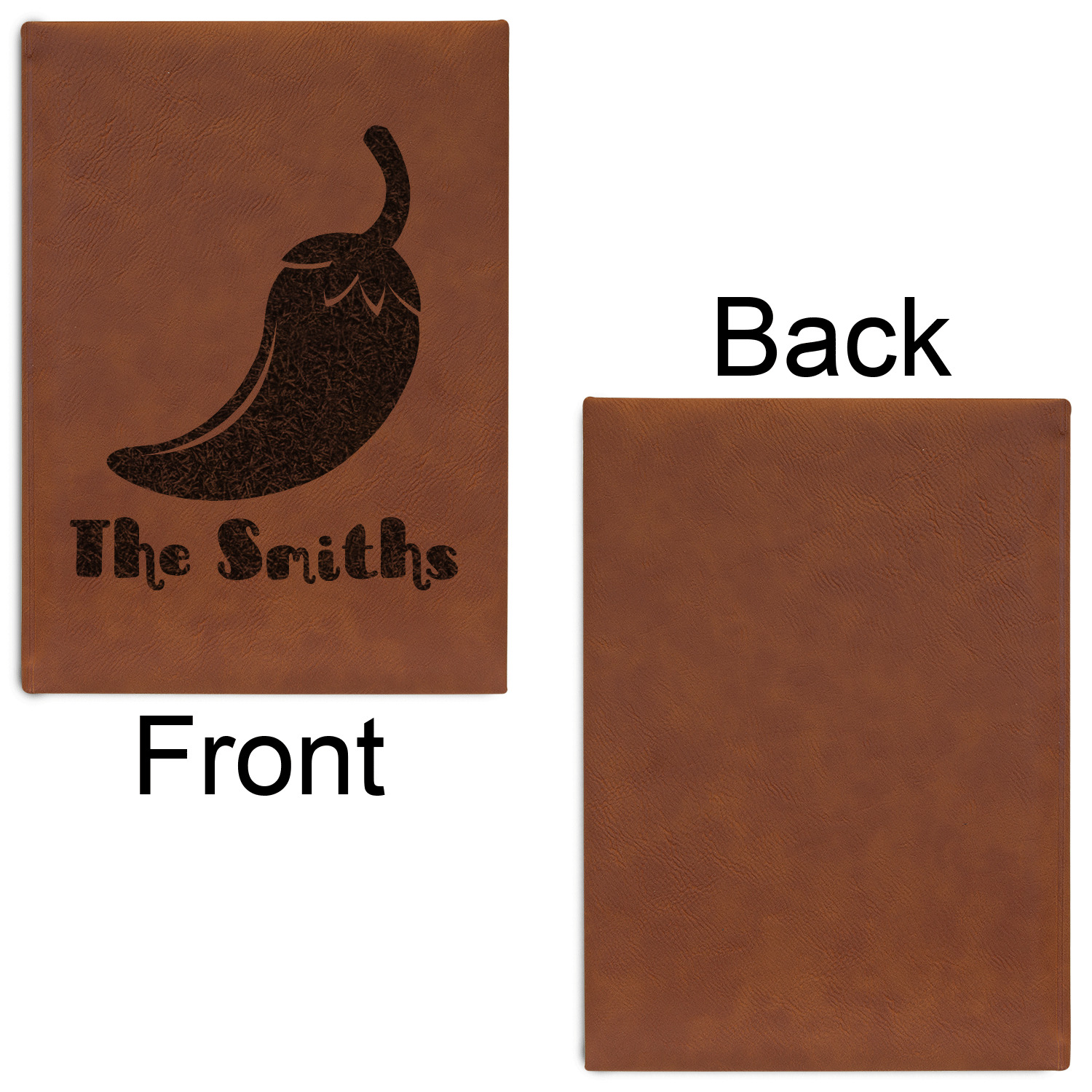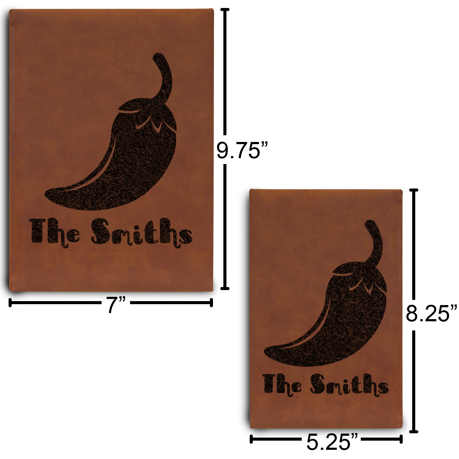 Available in two sizes - small at 8.25" x 5.25" and large at 9.75" x 7", these journal are the ideal size for purses and backpacks alike. Your personalized design is precisely laser engraved onto either the front, or the front and back of your new custom journal.