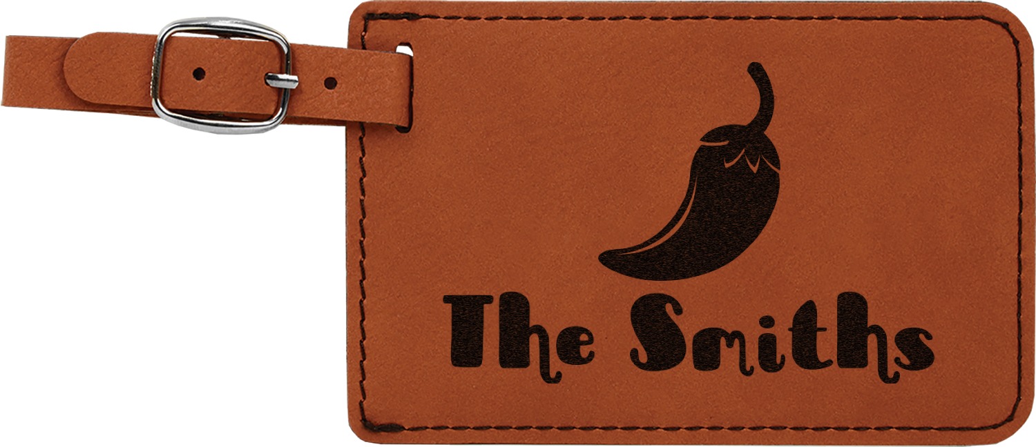 This luggage tag will surely be able to get you started in having all the right tools for traveling. It is made of a beautiful leatherette material that is a nice shade of cognac brown. The front of the tag is where your design goes. The sturdy black stitching gives your design an extra pop and gives the tag extra durability. The back of the tag has a clear vinyl window where you can slip in your address card. The tag comes with a great little buckle strap that you can easily use to clip to your suitcase. The tag itself measures at approximately 5.5"W x 4.25"H.