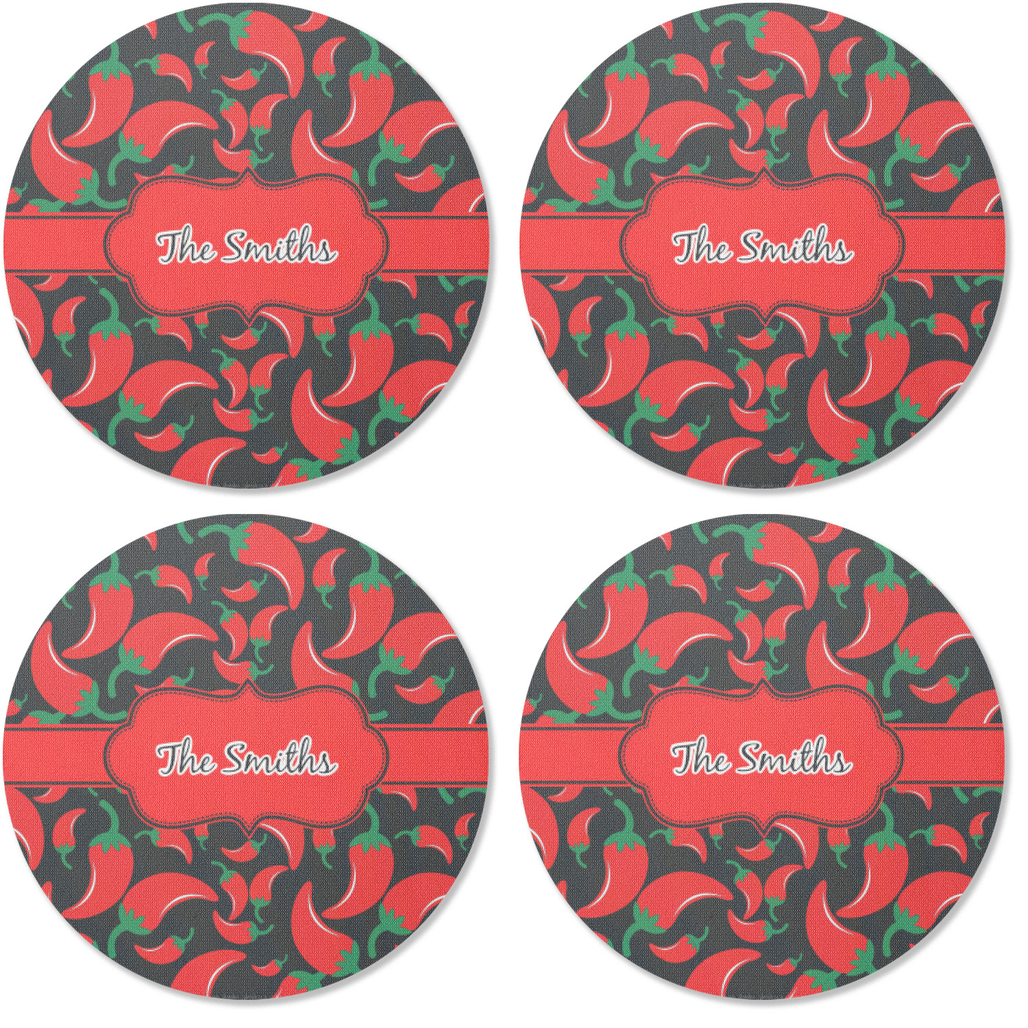 These drink coasters have a smooth, polyester top and a textured, rubber backing on its bottom. The non-slip rubber backing underneath works to keep any spills at bay. At 4 by 4 by 0.25 inches thick, these custom coasters are a suitable size for most drinkware. Your personalization is displayed atop the face of the cup coaster. We sell these rubber coasters in two different shapes: square and round. You can buy each shape as singulars or as a set of 4.