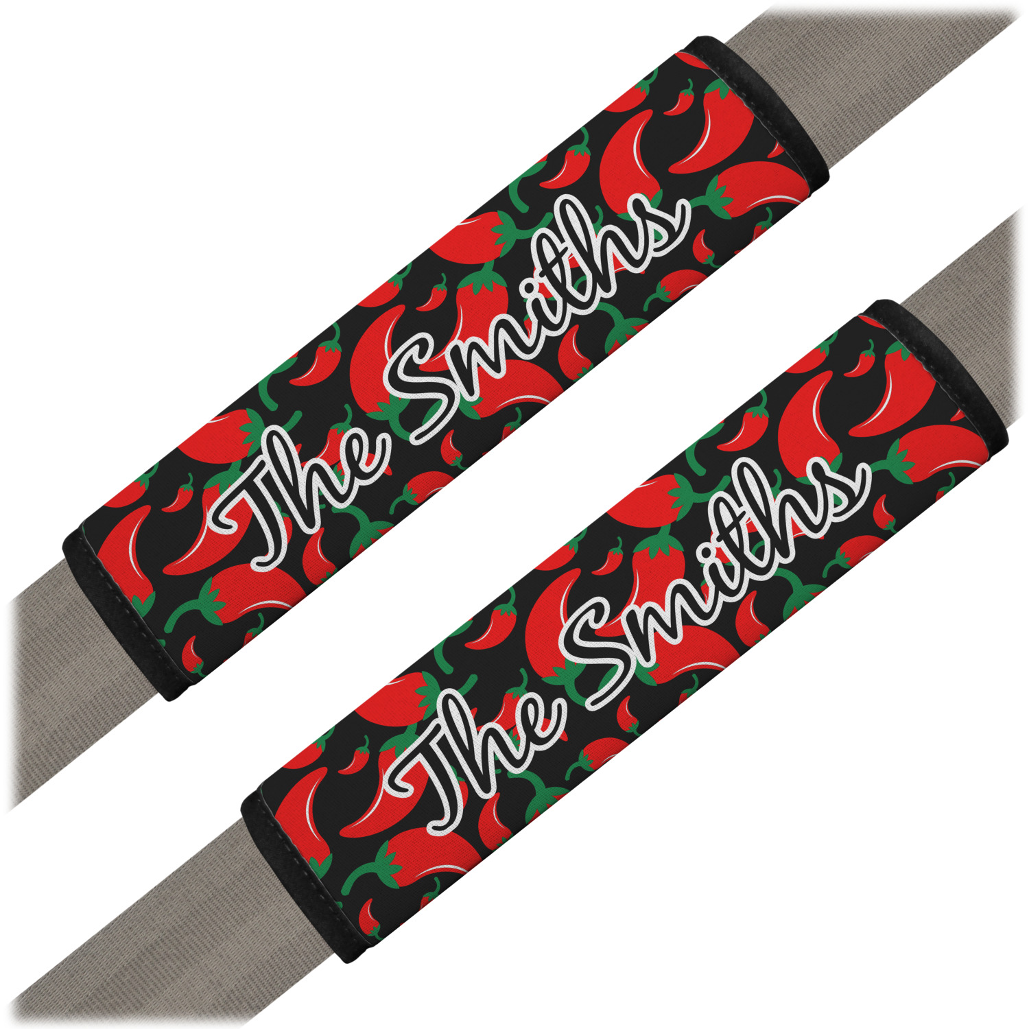 Made from neoprene, our seat belt strap covers wrap around the belt itself and have a Velcro tab for easy attachment and closure. The belt's edges are trimmed with a black polyester for a secure finish. Each cover is 9.5 by 7 inches when open and 9.5 by 2.5 inches when closed. We print your personalized design on the face of the seat belt pad.