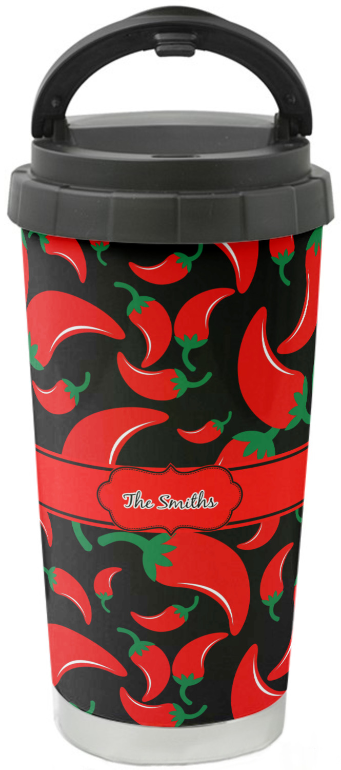 This sleek and tapered 16 oz stainless steel travel cup is a perfect fit in the hand. With the strip of visible stainless steel on the bottom, you'll be feeling classy!