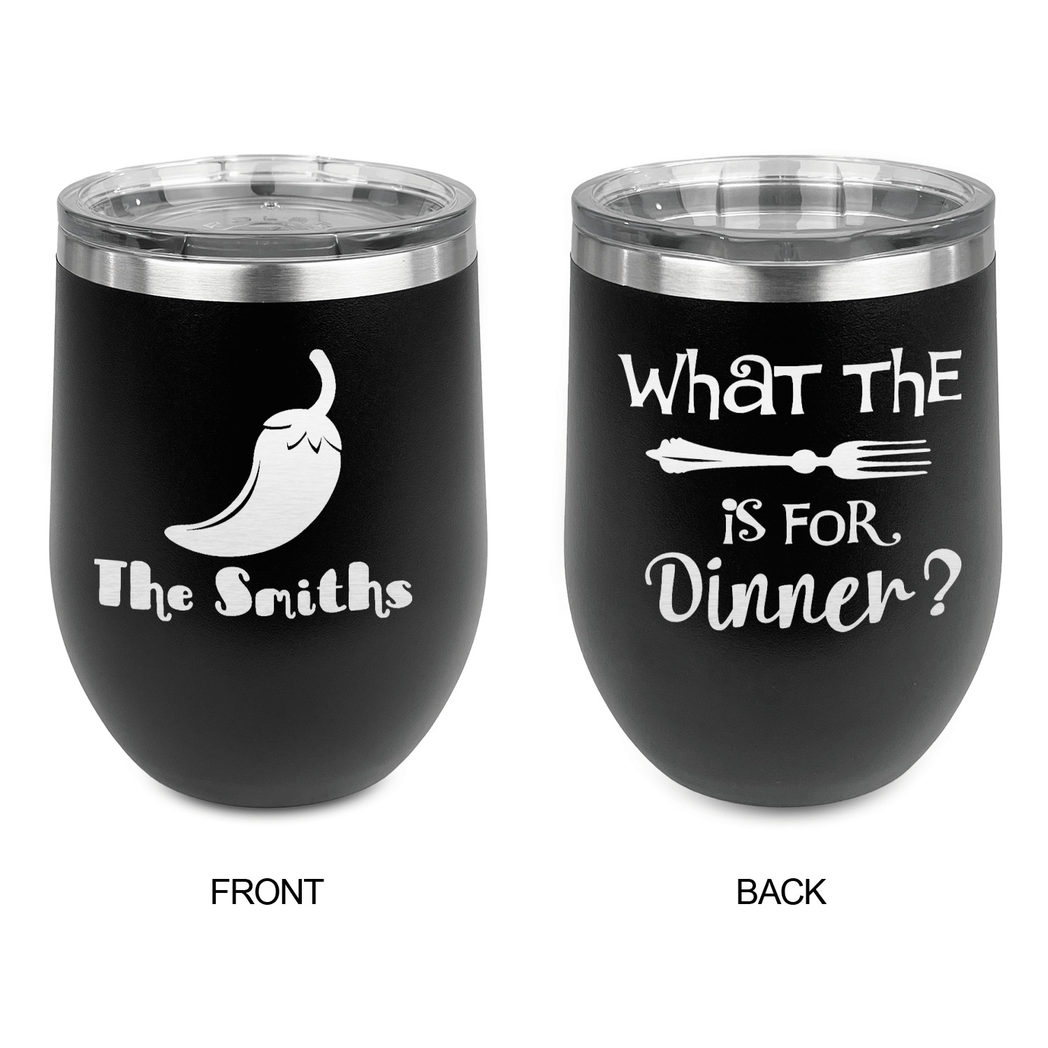 Design your wine tumbler with a cool graphic or quote. Even put your initials or monogram! These cups are laser engraved, which looks extra sharp on the metal tumbler.