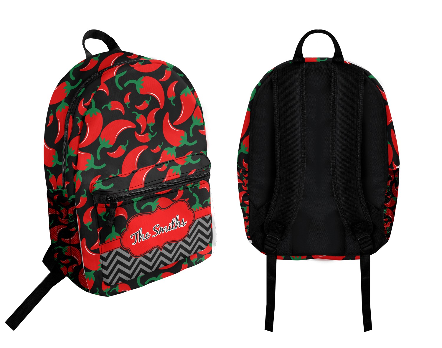 The chili peppers design is part of our fruits and vegetable collection. This design features red chili peppers in various sizes on a black background. The background can be changed to any color. I would recommend trying our white, gray, gold, teal or purple color as background choices.