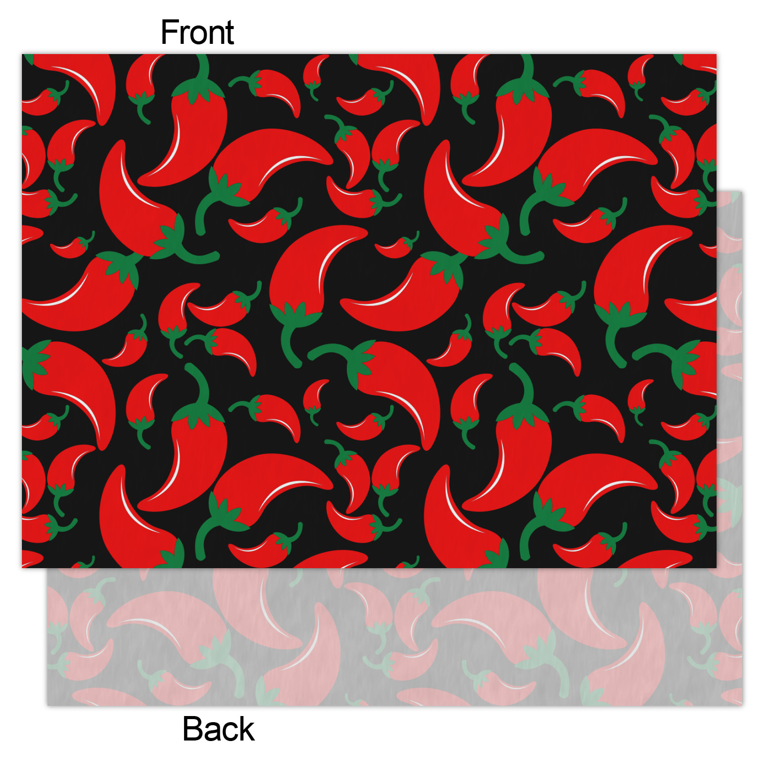 The chili peppers design is part of our fruits and vegetable collection. This design features red chili peppers in various sizes on a black background. The background can be changed to any color. I would recommend trying our white, gray, gold, teal or purple color as background choices.