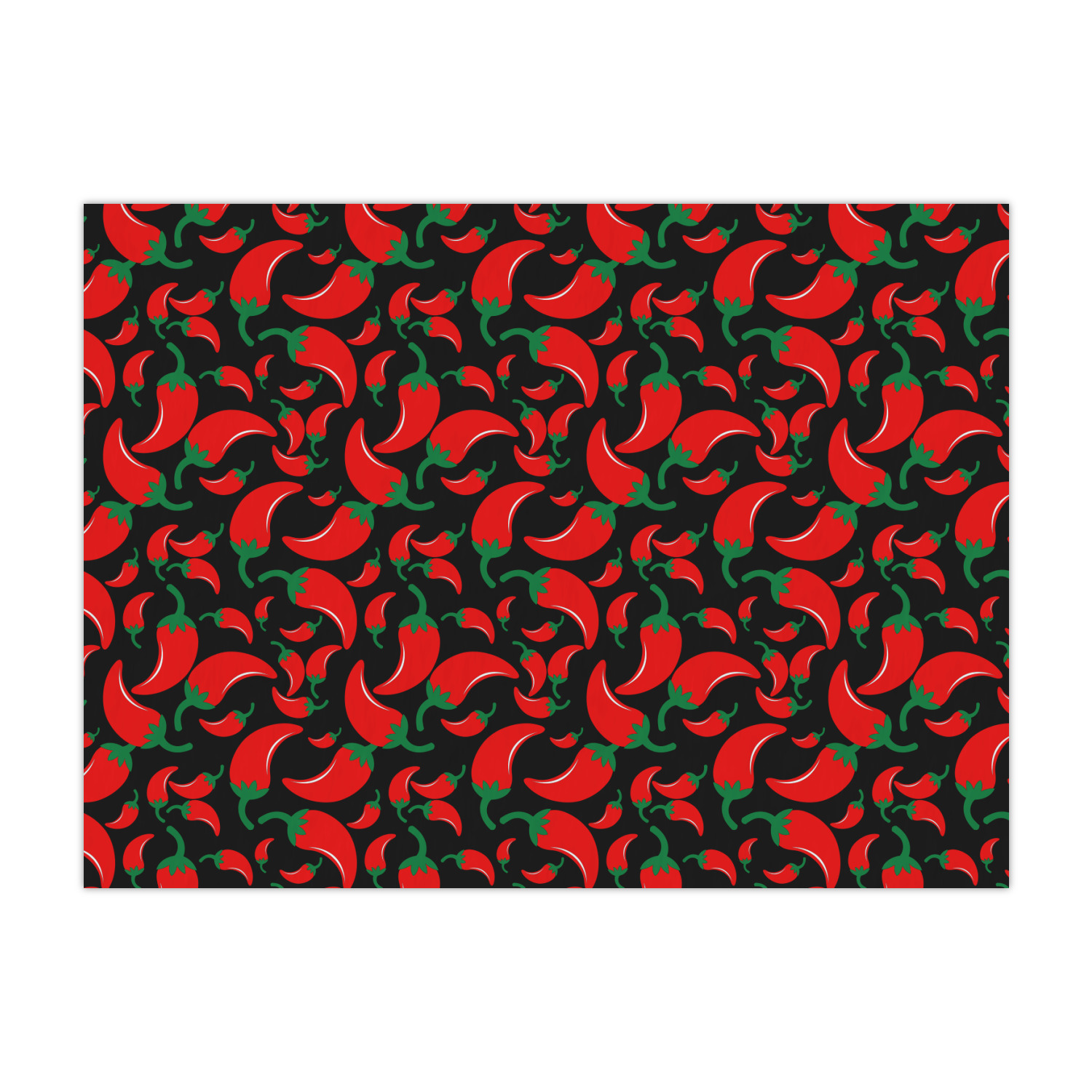 The chili peppers design is part of our fruits and vegetable collection. This design features red chili peppers in various sizes on a black background. The background can be changed to any color. I would recommend trying our white, gray, gold, teal or purple color as background choices.