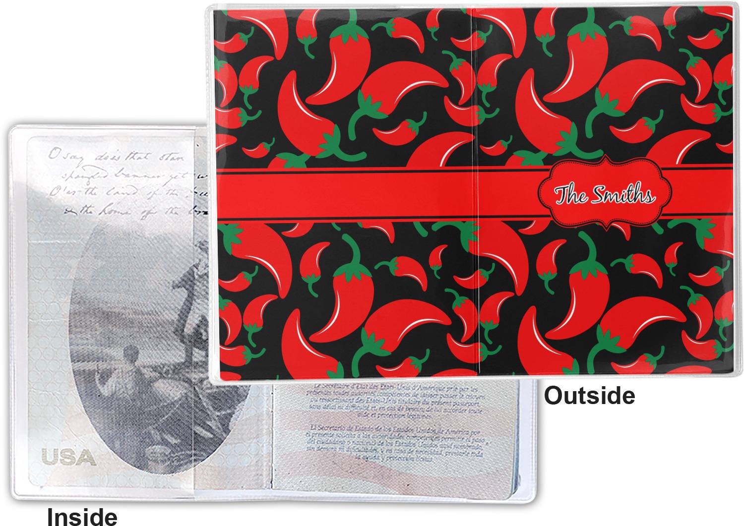 This cover is made of a sturdy clear vinyl with a personalized vinyl insert inside. There is a large and a small pocket on either side to hold the covers of your passport easily and firmly. The passport holder is approximately 7.5" x 5.25", the perfect size to snugly fit your passport. This slim cover is the perfect way to protect your passport without being one more bulky item you have to carry.
