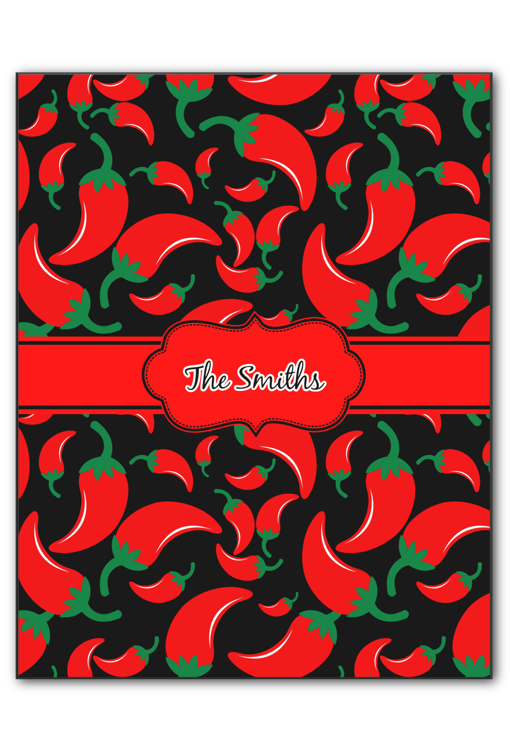 The chili peppers design is part of our fruits and vegetable collection. This design features red chili peppers in various sizes on a black background. The background can be changed to any color. I would recommend trying our white, gray, gold, teal or purple color as background choices.