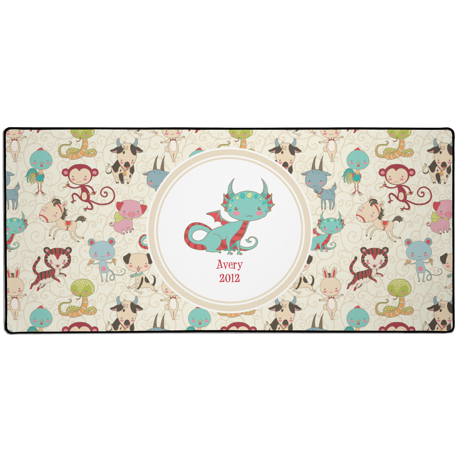 .We chose a round label with the child's name and year of birth for personalization in red and then paired it with the matching sign zodiac sign - which in this case is the dragon.