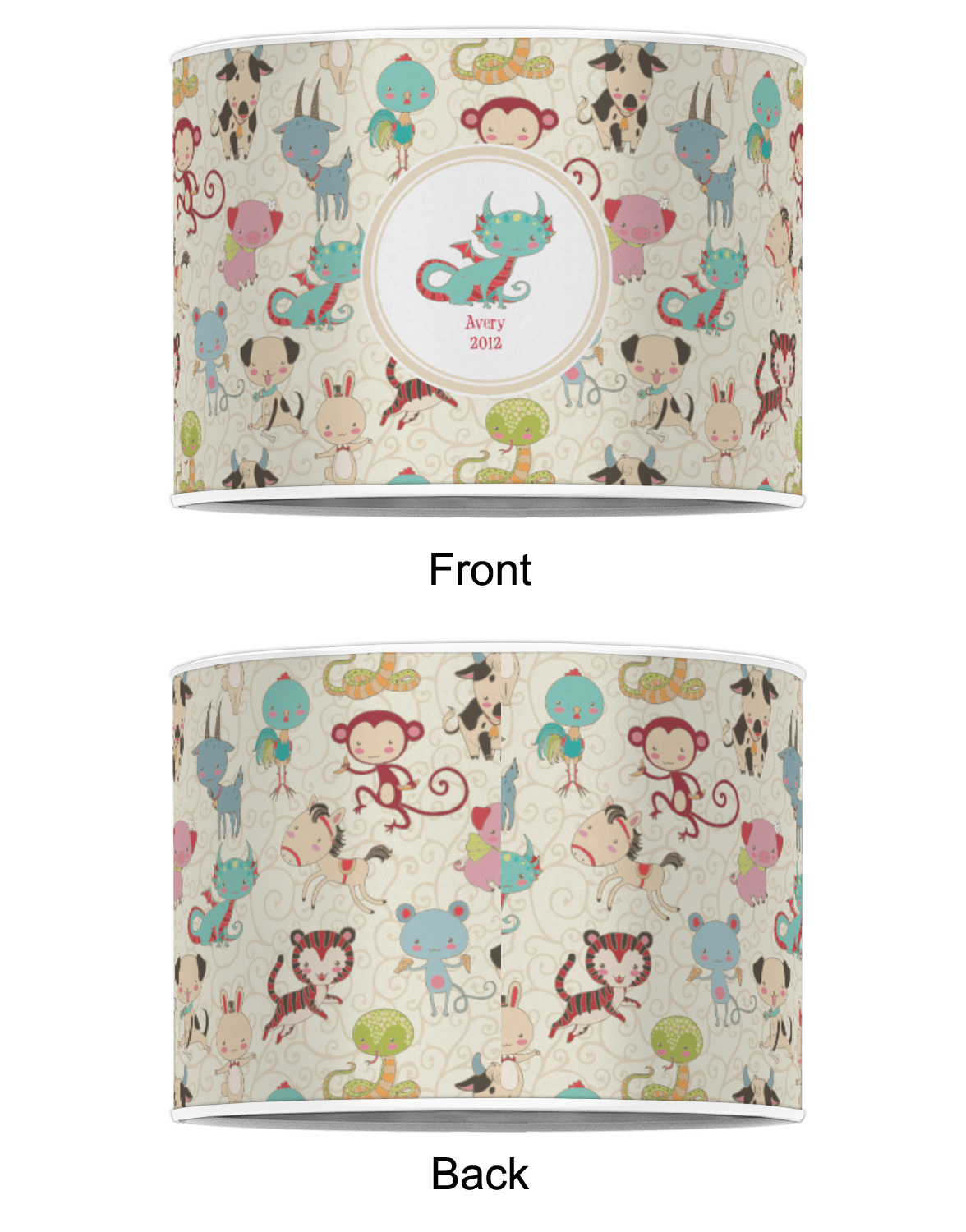 This Chinese zodiac design is simply precious for a baby or even younger kids. The 12 animals that represent the zodiac signs are hand drawn in a sweet style with beautiful colors. The animals are scattered on a background that is recolor-able. We have chosen to use soft cream colors, that are gender neutral, however they can be easily changed to any pastel or in fact to any other color - we have 100s of colors to choose from.
