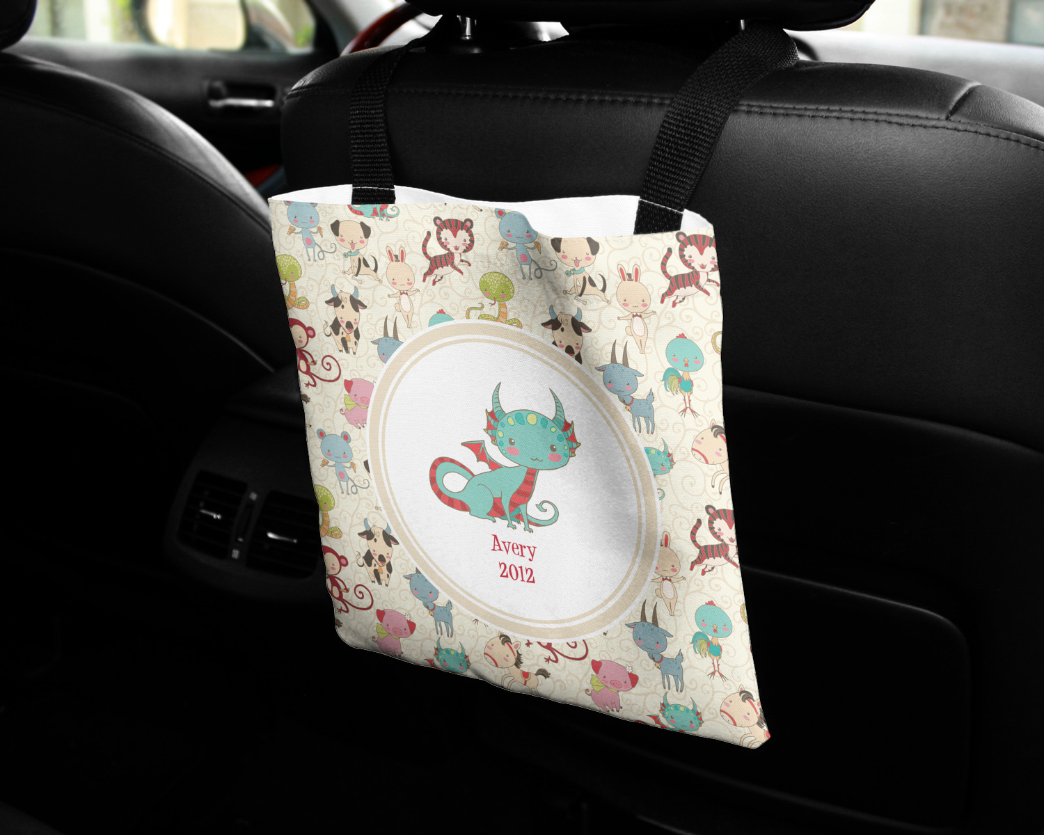 These car back seat organizers are sturdy tote-like bags, fabricated from a robust polyester, and features a single handle on the back side. The strap features an attachable velcro for easy attachment to headrests, grocery carts, car seats, and more. Simply undo the velcro, loop the strap around the headrest, reattach the velcro, and let the organizer hang from the front seat. These car organizers are the perfect means of increasing your backseat's legroom, while storing multiple items in one place for better accessibility. Each car back seat organizer measures at 10 by 10 inches, and features your personalized design printed across its front and back.