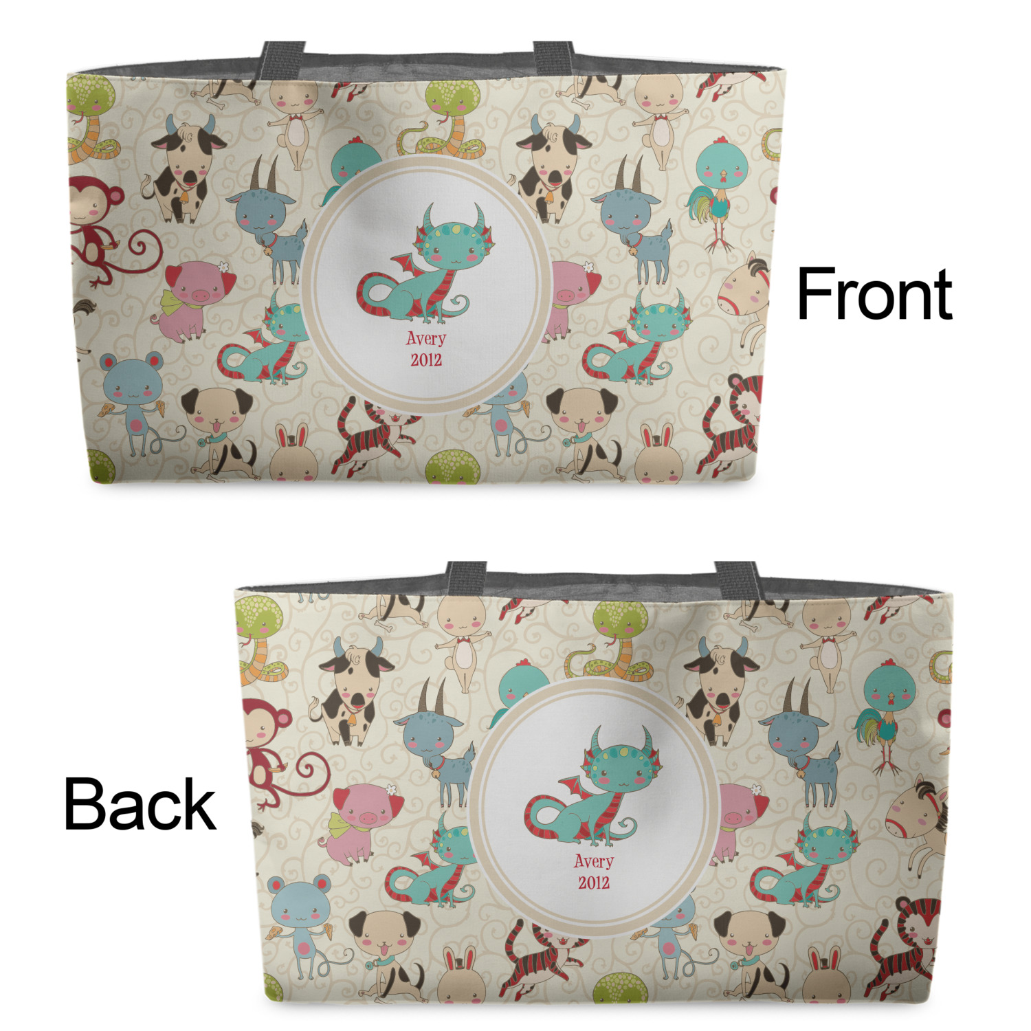 You can design the totes with a design on the front and another one on the back. The two designs can be identical or completely different. The choice is yours.