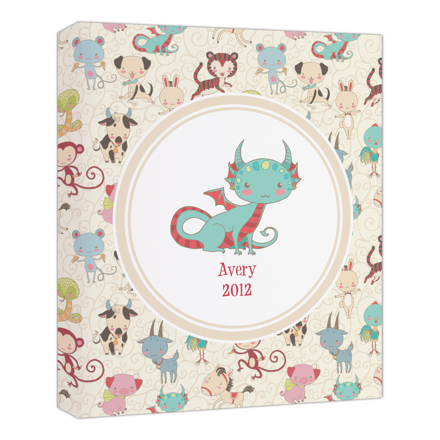 .We chose a round label with the child's name and year of birth for personalization in red and then paired it with the matching sign zodiac sign - which in this case is the dragon.