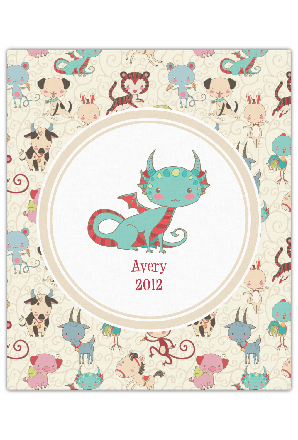 This Chinese zodiac design is simply precious for a baby or even younger kids. The 12 animals that represent the zodiac signs are hand drawn in a sweet style with beautiful colors. The animals are scattered on a background that is recolor-able. We have chosen to use soft cream colors, that are gender neutral, however they can be easily changed to any pastel or in fact to any other color - we have 100s of colors to choose from.