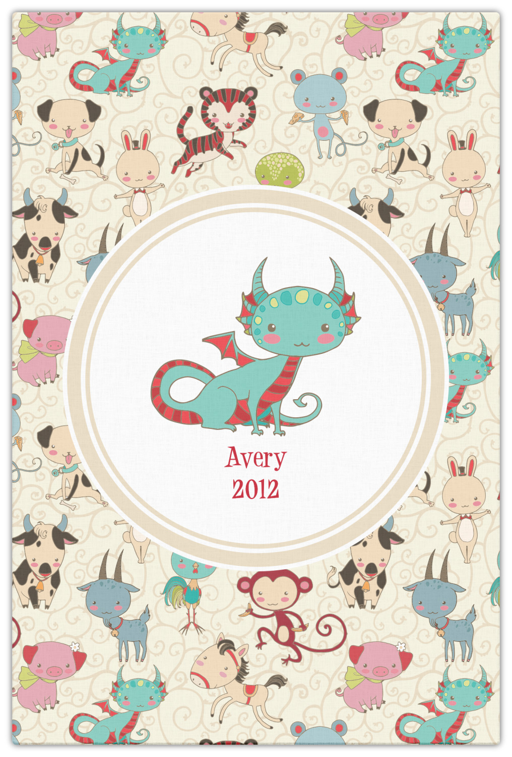 .We chose a round label with the child's name and year of birth for personalization in red and then paired it with the matching sign zodiac sign - which in this case is the dragon.