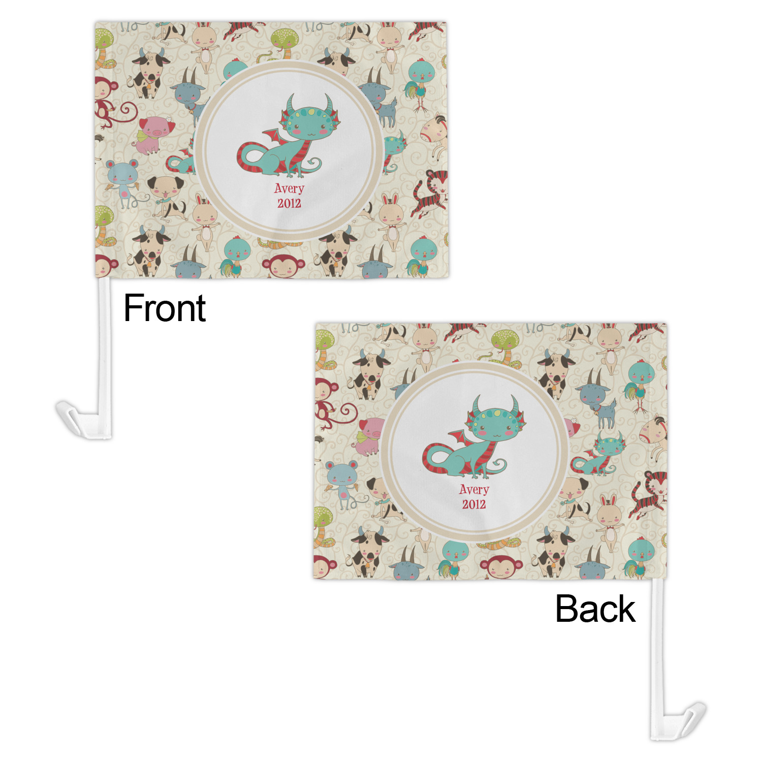 Our personalized flags are made from a durable, yet lightweight cloth that will proudly bear your logo or design of choice, while withstanding the outside elements. We have two size options - 8" x 11" and 11" x 15". Both come with a flag pole which includes a clip that secures the pole to the side window, whether it is rolled up or down. The flags are printed on both sides to display your design from all directions.