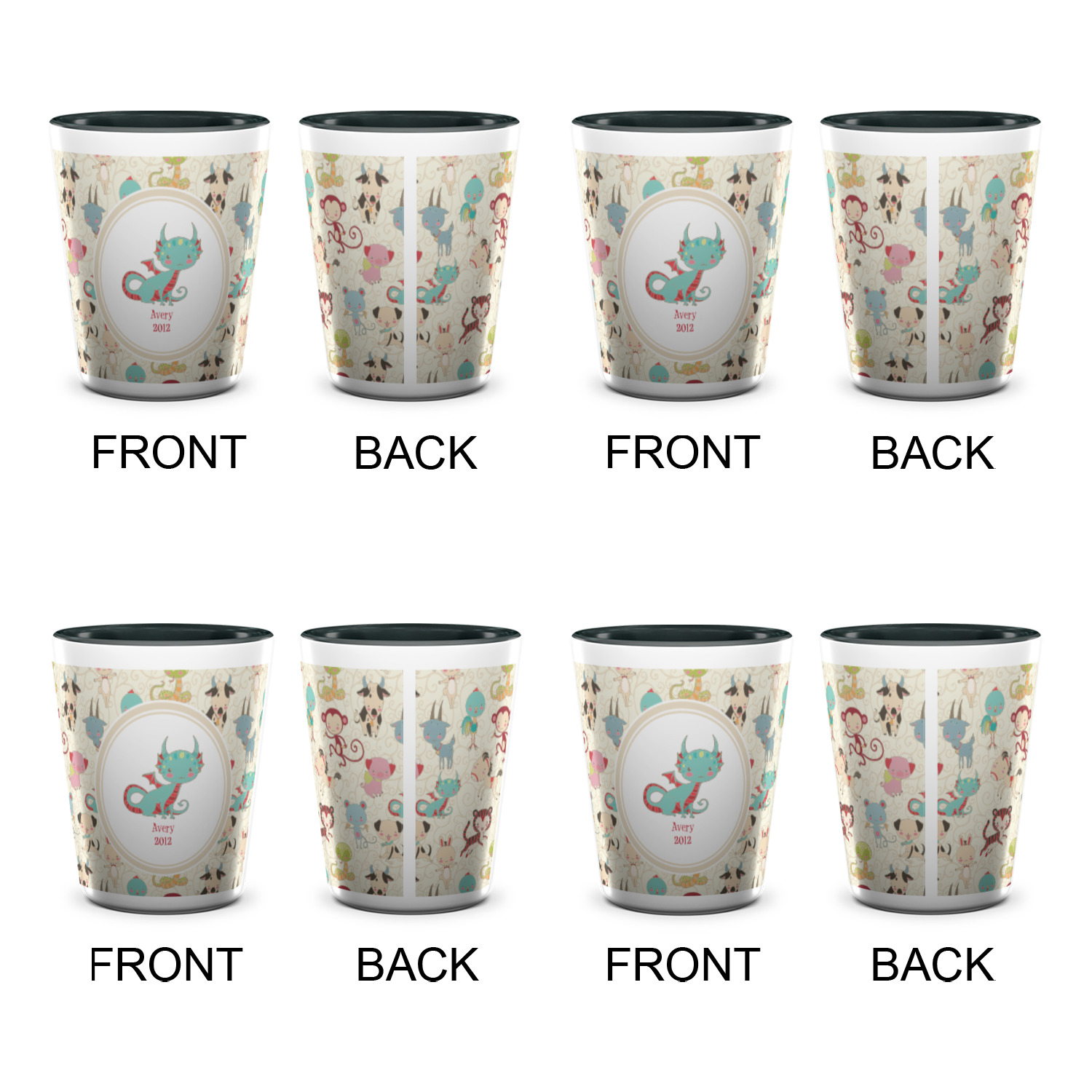 Made from ceramic these shot glasses are printed in full color with the design of your choice. These are a standard 1.5oz size and stand 2.25" tall. Available in a full white ceramic or a two-tone with a black color inside the shot glass. Buy a single or a set of 4, all of which can be designed separately to get you just what you want and need.