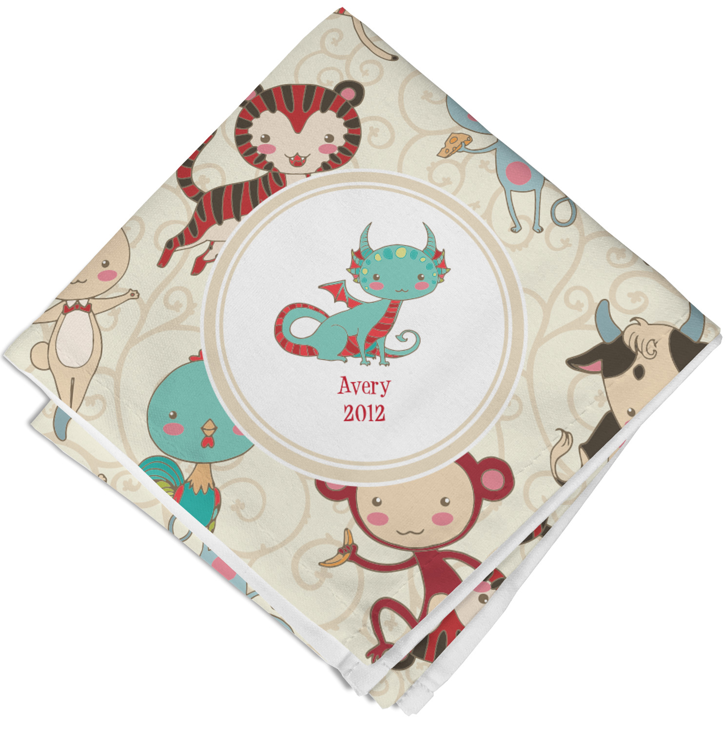 .We chose a round label with the child's name and year of birth for personalization in red and then paired it with the matching sign zodiac sign - which in this case is the dragon.