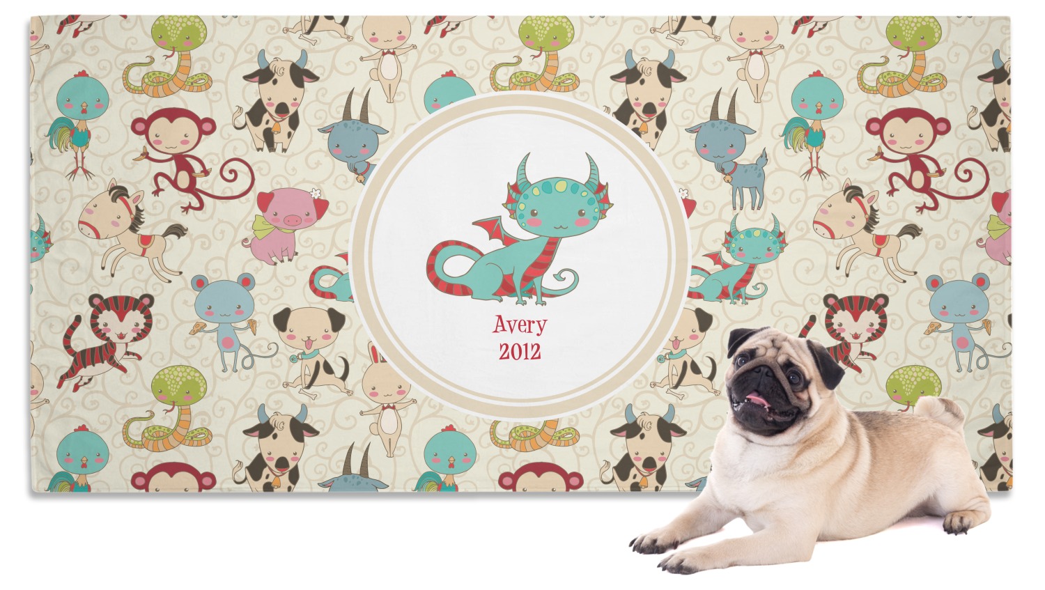 This Chinese zodiac design is simply precious for a baby or even younger kids. The 12 animals that represent the zodiac signs are hand drawn in a sweet style with beautiful colors. The animals are scattered on a background that is recolor-able. We have chosen to use soft cream colors, that are gender neutral, however they can be easily changed to any pastel or in fact to any other color - we have 100s of colors to choose from.
