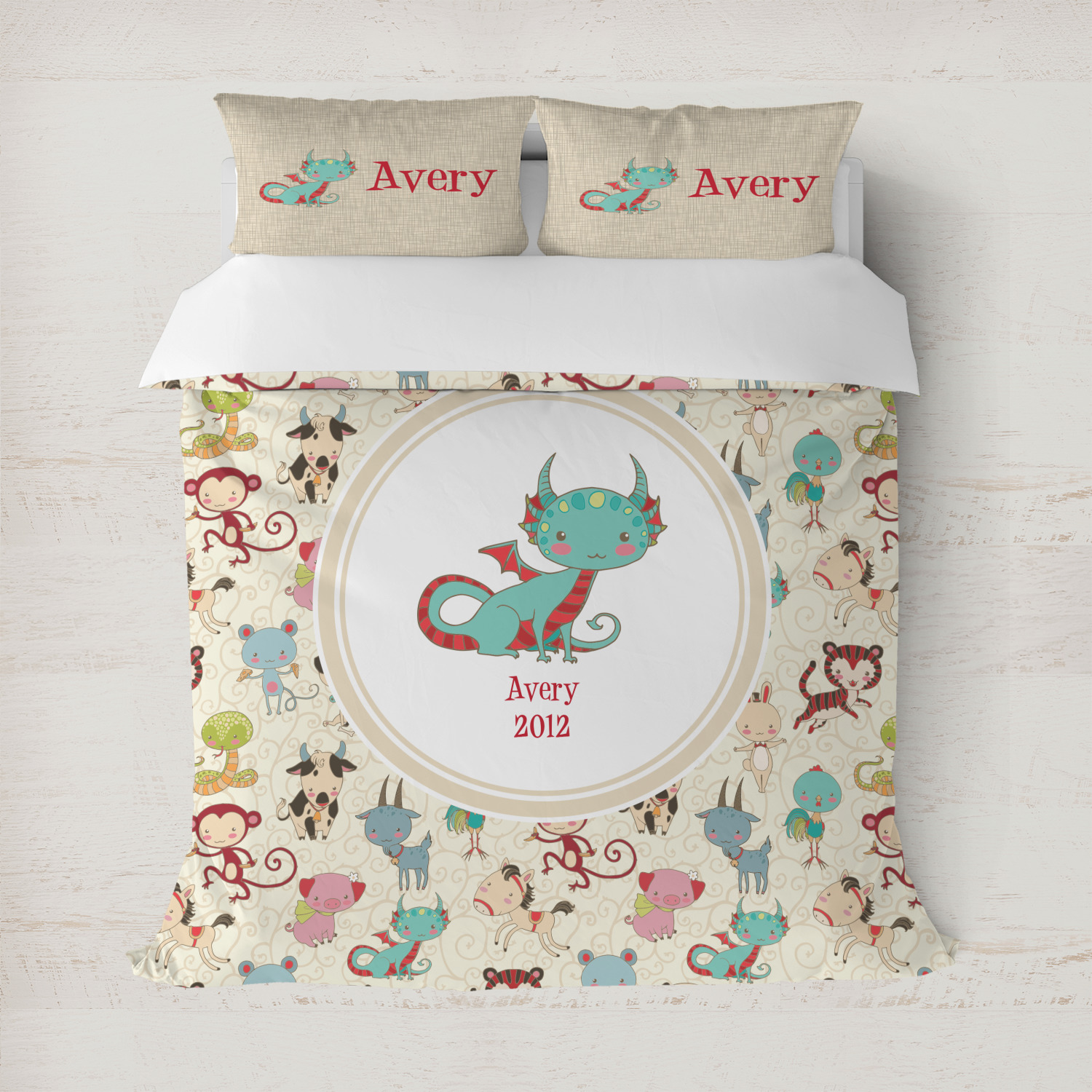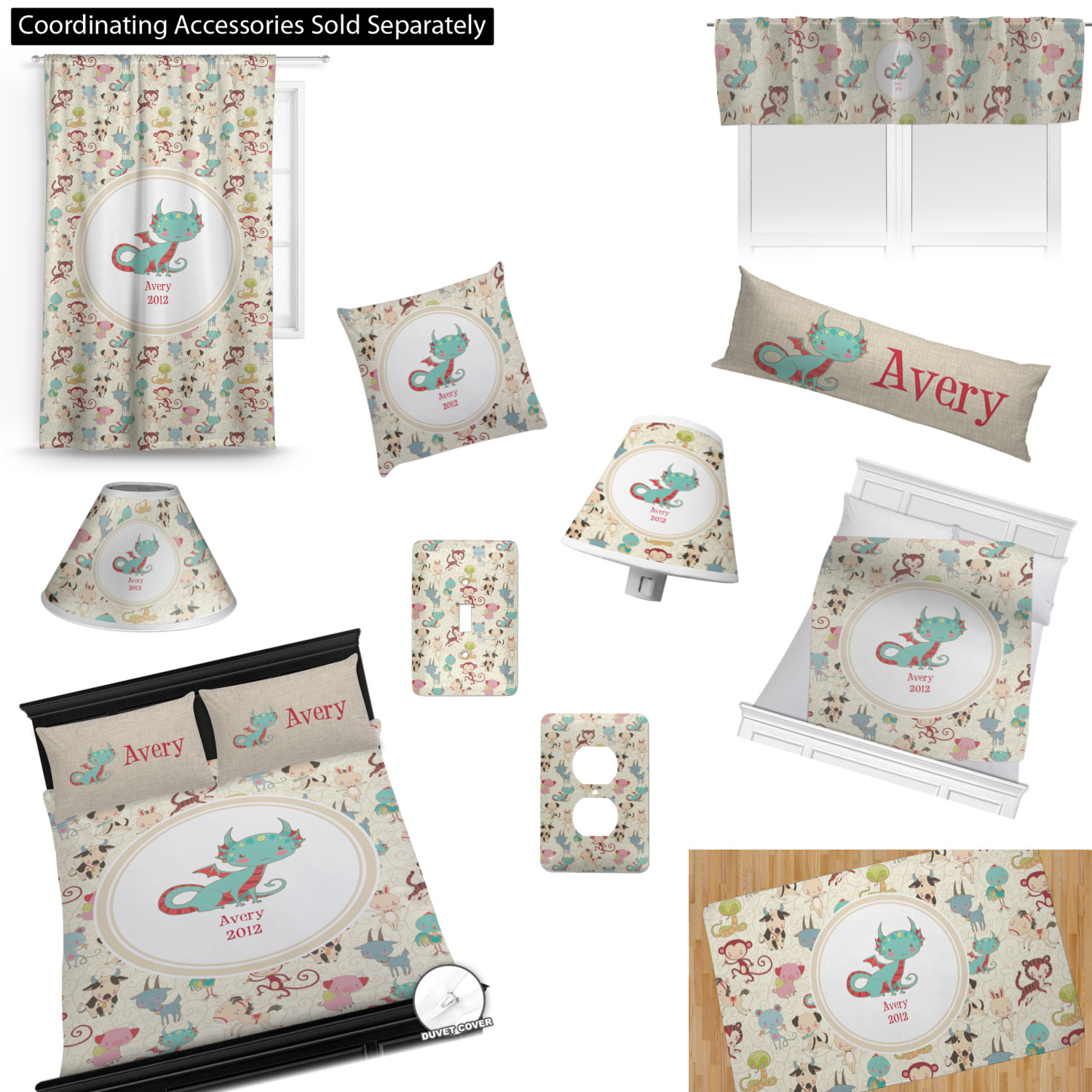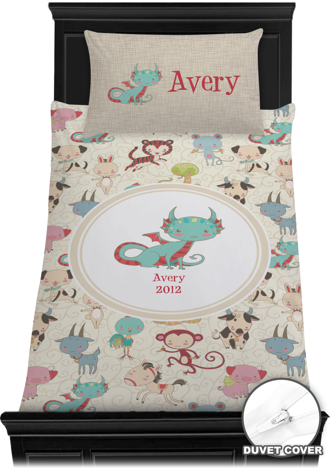 This Chinese zodiac design is simply precious for a baby or even younger kids. The 12 animals that represent the zodiac signs are hand drawn in a sweet style with beautiful colors. The animals are scattered on a background that is recolor-able. We have chosen to use soft cream colors, that are gender neutral, however they can be easily changed to any pastel or in fact to any other color - we have 100s of colors to choose from.