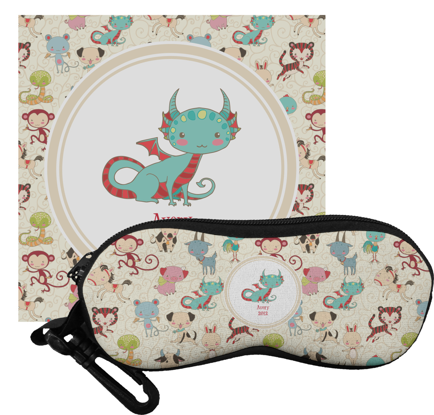 .We chose a round label with the child's name and year of birth for personalization in red and then paired it with the matching sign zodiac sign - which in this case is the dragon.