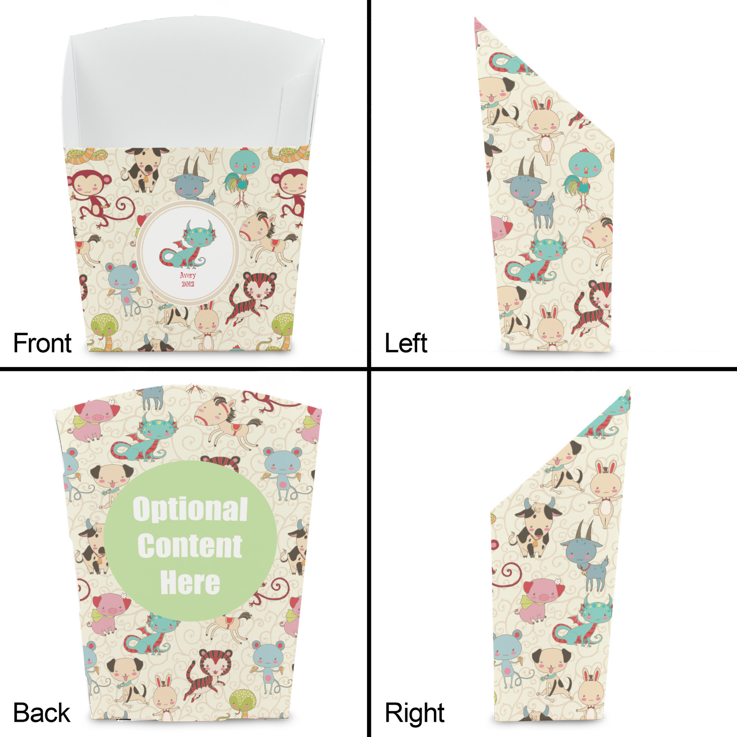 These favor boxes are printed in full color on quality cardstock - so coordinating the french fry favor boxes to match your event's themes or colors should be a breeze. You can upload your own design including artwork, logos or photos