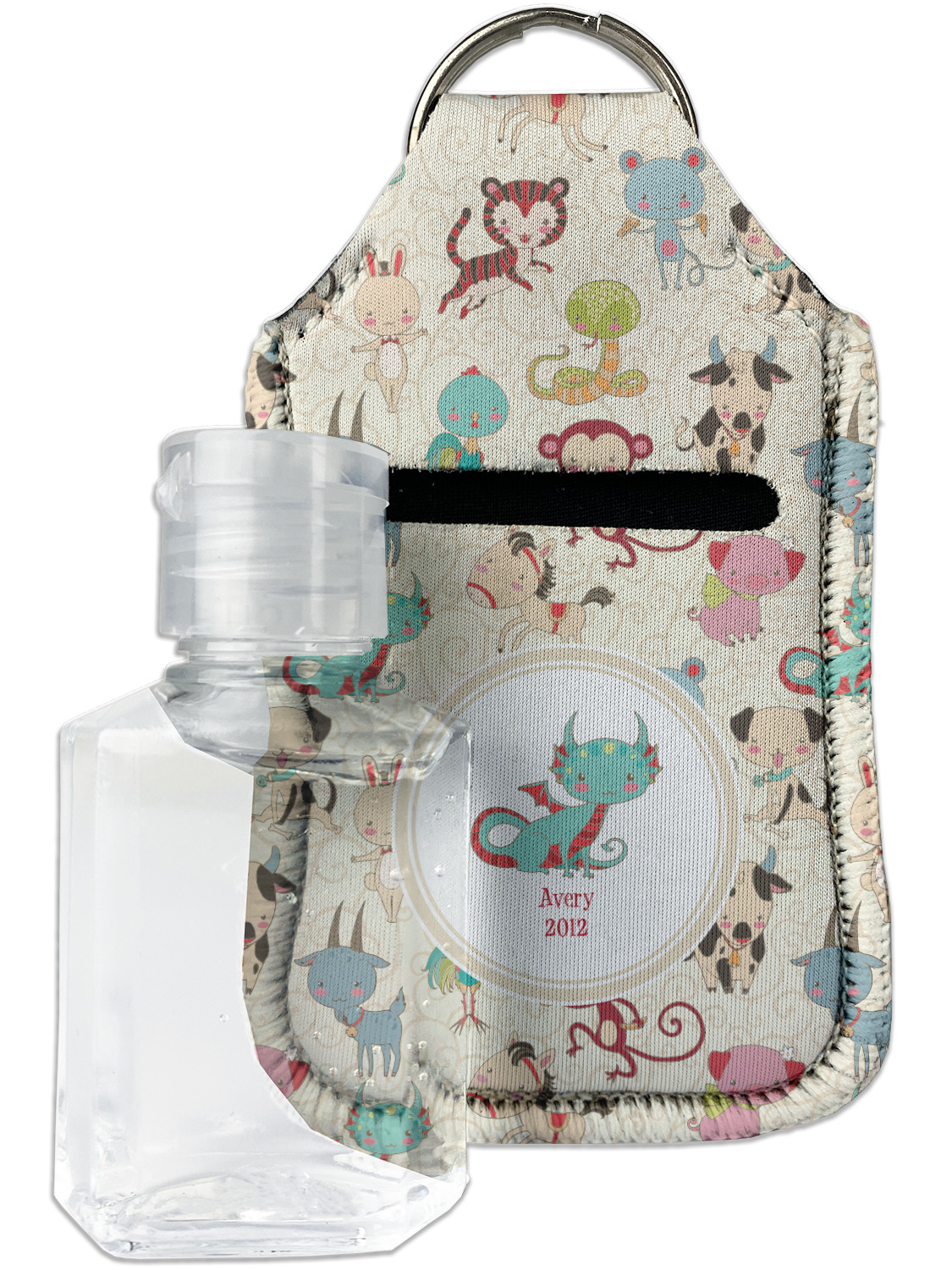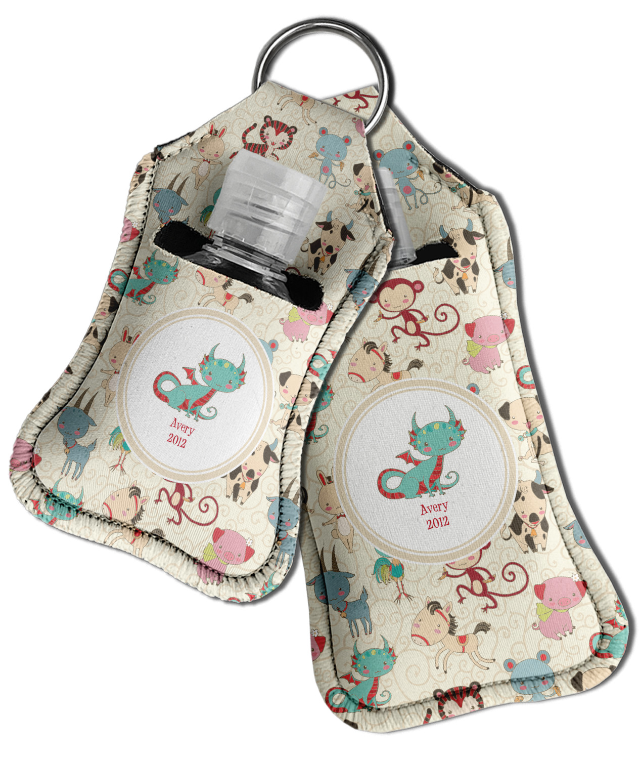 Each hand sanitizer holder comes with its own empty travel-sized, refillable hand sanitizer sure to fit snug in your customized sanitizer case! Our hand sanitizer cases are a durable, yet soft neoprene material sure to last any daily activities or travel agenda. Customize and personalize a hand sanitizer bottle holder with one of our two sizes - small (4.25" x 2.25") or large (5.5" x 2.5"). Each travel sanitizer holder comes with a keyring for attachment on bags, keys, or more!