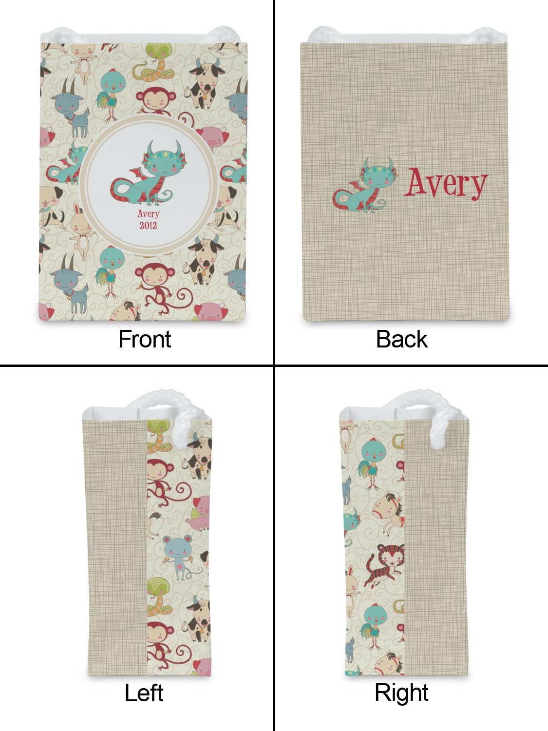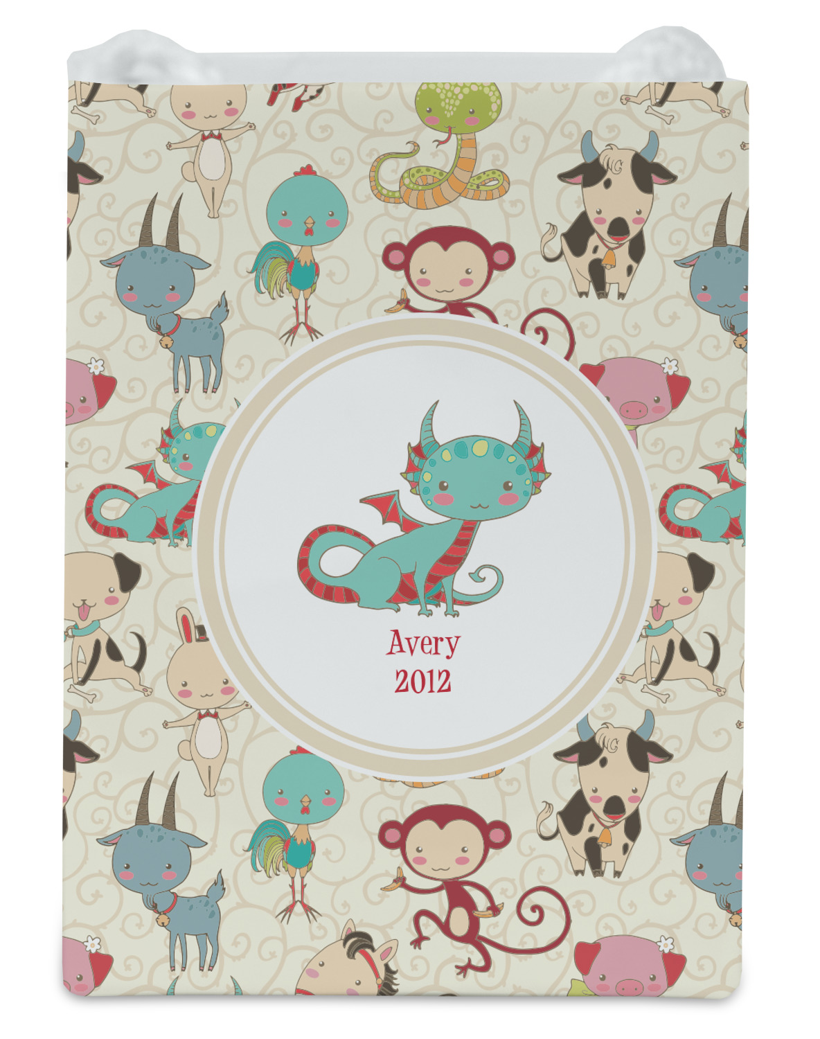 .We chose a round label with the child's name and year of birth for personalization in red and then paired it with the matching sign zodiac sign - which in this case is the dragon.