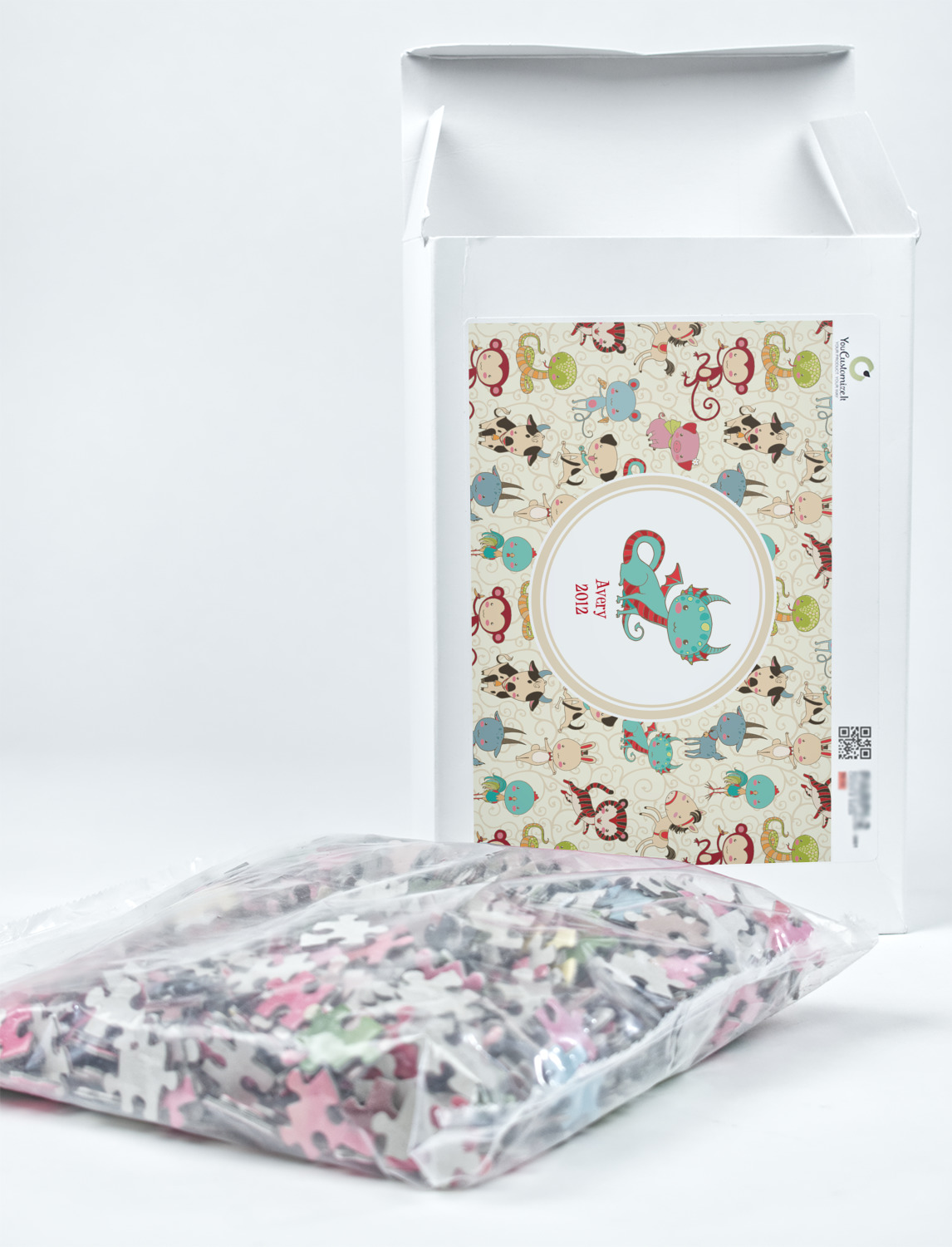 You can also upload your logo or art that you or your kids drew. To create more challenging jigsaw puzzles, you can create a pattern from with your logo or artwork. You can also add other elements such as text or personalization.