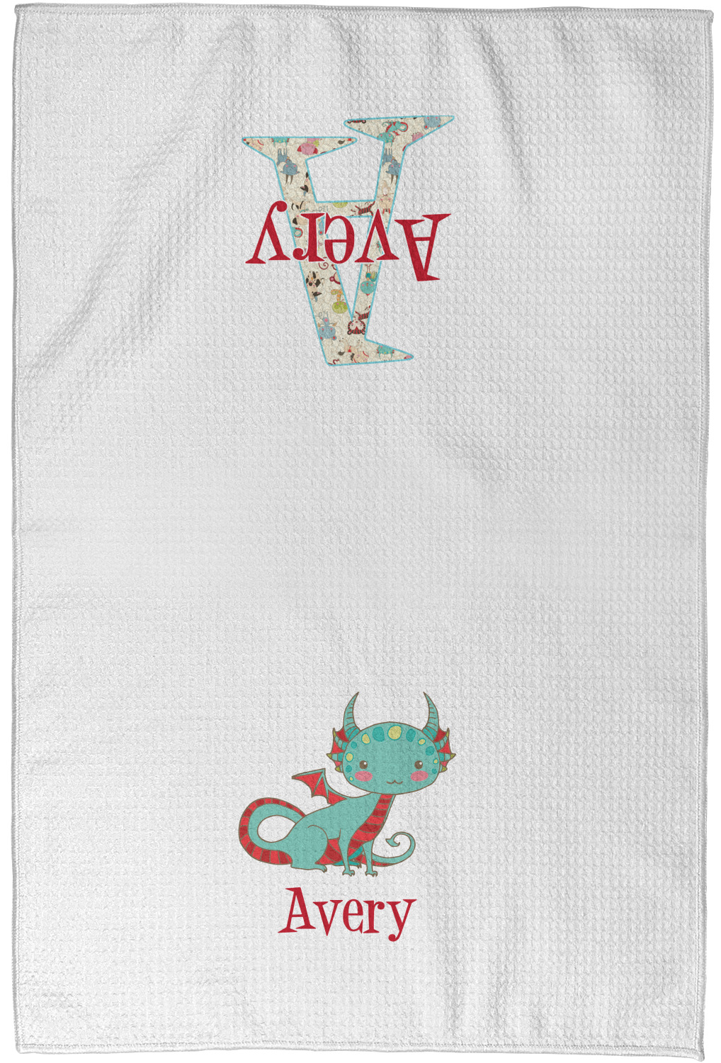 Each waffle weave kitchen towel is approximately 16 x 24 inches with your design printed on one side and the back is white.
