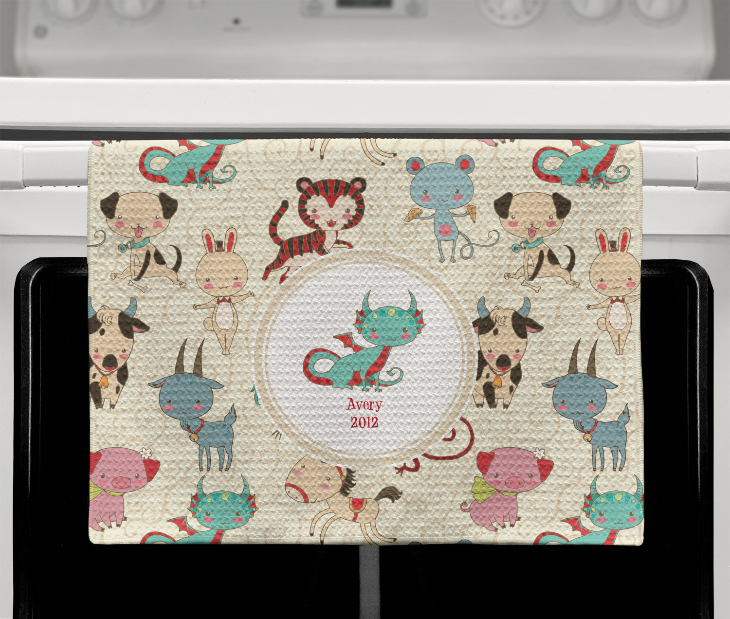 .We chose a round label with the child's name and year of birth for personalization in red and then paired it with the matching sign zodiac sign - which in this case is the dragon.
