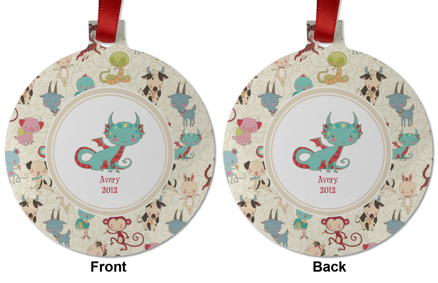 .We chose a round label with the child's name and year of birth for personalization in red and then paired it with the matching sign zodiac sign - which in this case is the dragon.