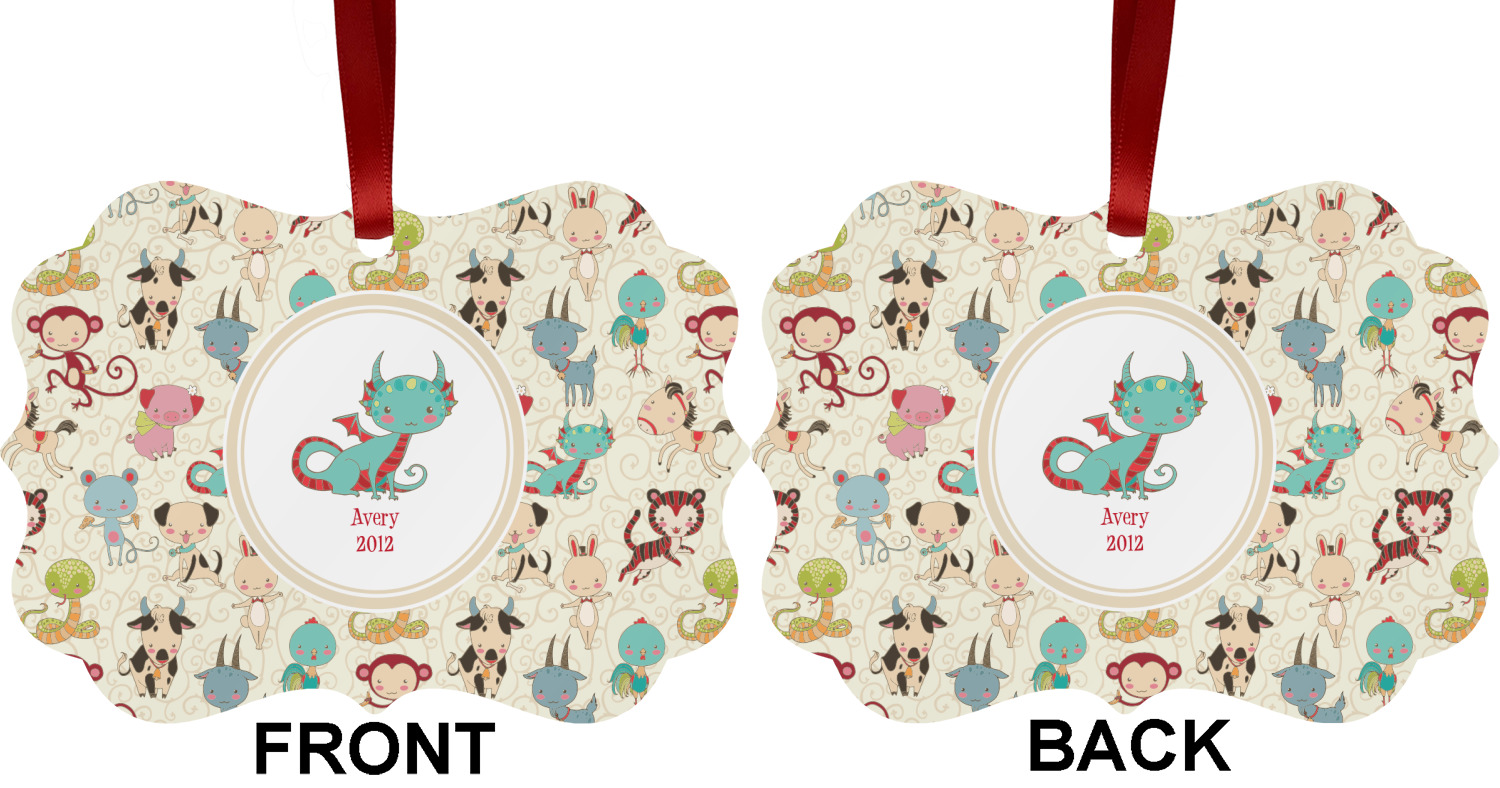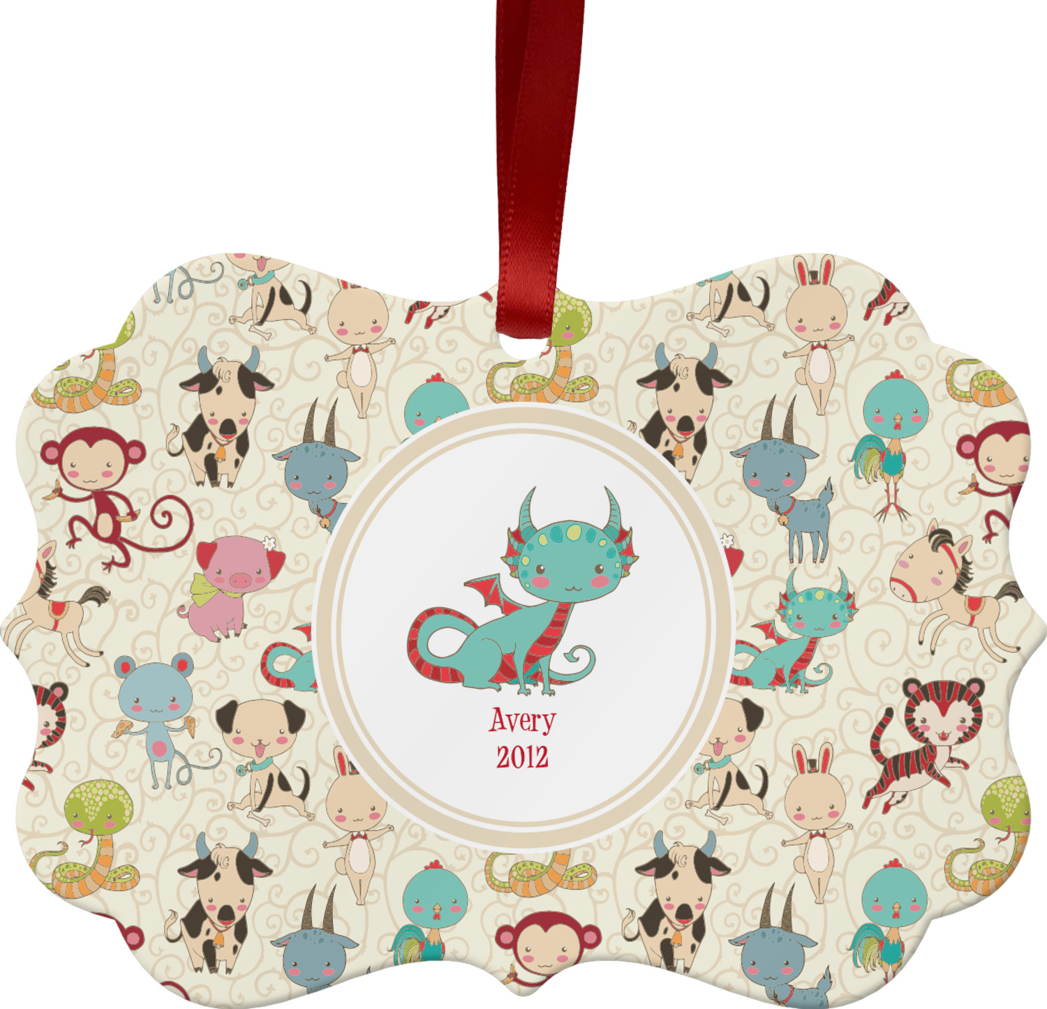 .We chose a round label with the child's name and year of birth for personalization in red and then paired it with the matching sign zodiac sign - which in this case is the dragon.