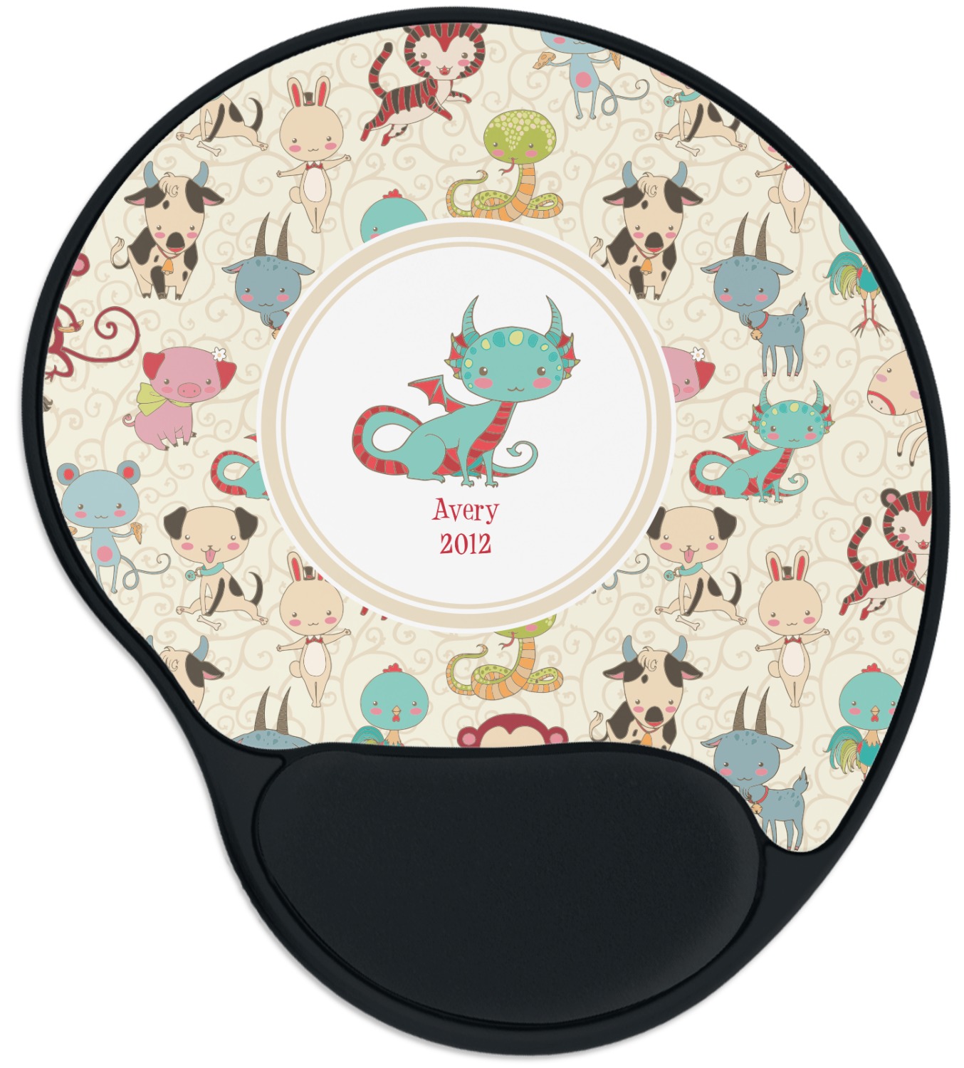 The top of these personalized mouse pads are made from a polyester, while the underside is plastic. The back of these mouse mats include rubber feet to prevent any slippage while in use. A padded wrist support, made from plush memory foam, occupies the bottom section of these computer mouse pads. Your customized design is printed onto the face of this mat, with the remaining sides and support piece colored in black. The mat itself is rounded and measures at 10.25" x 9.13".
