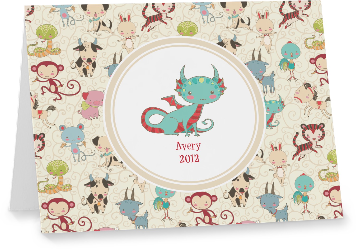 .We chose a round label with the child's name and year of birth for personalization in red and then paired it with the matching sign zodiac sign - which in this case is the dragon.