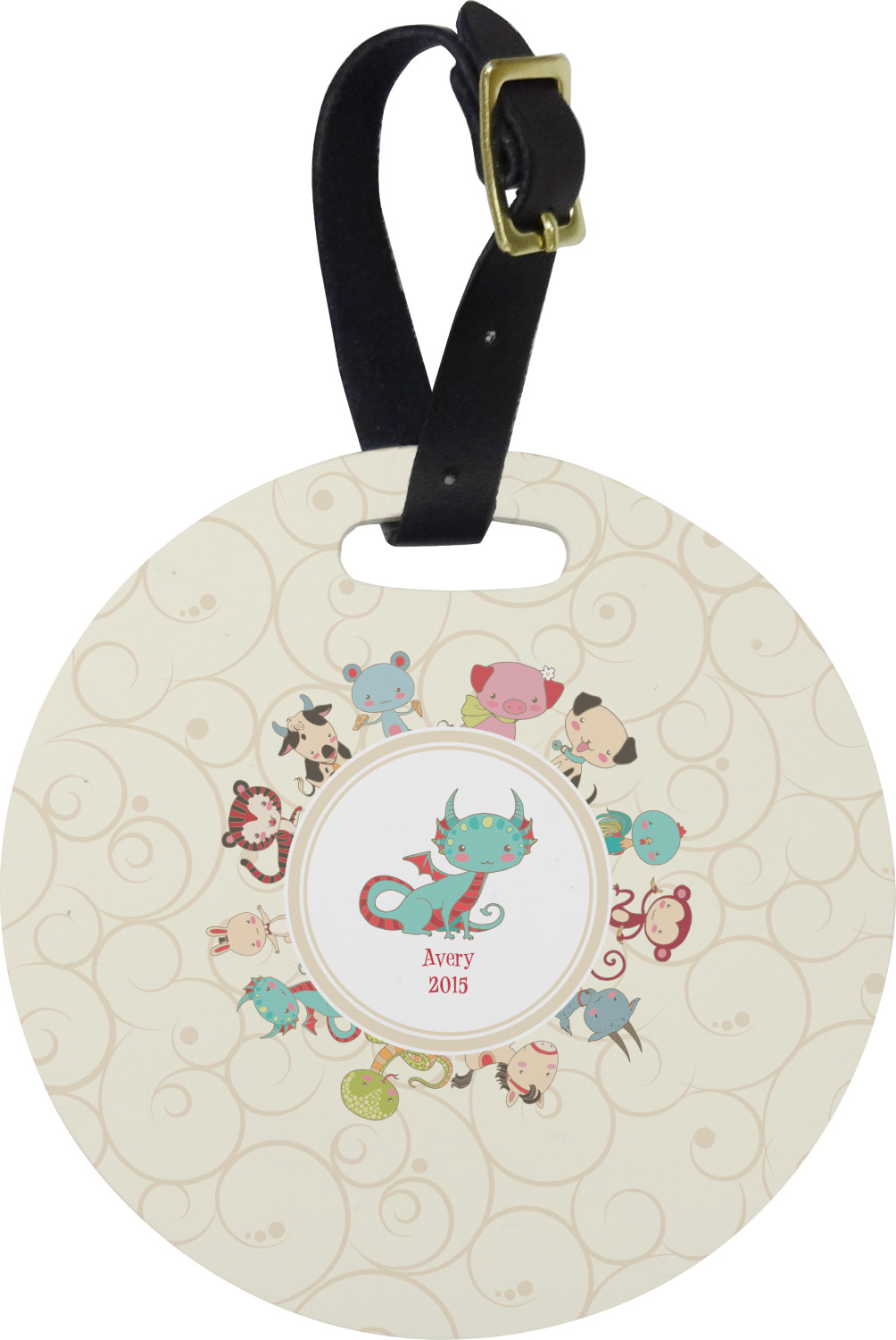 These personalized bag tags are sold in a variety of shapes, so that you may find the product that meets your vision exactly. We sell a round luggage tag, which measures at approximately 4" x 4". Our square luggage tag is about 3.5" x 3.5", while our rectangular version is 2.75" x 4 ".