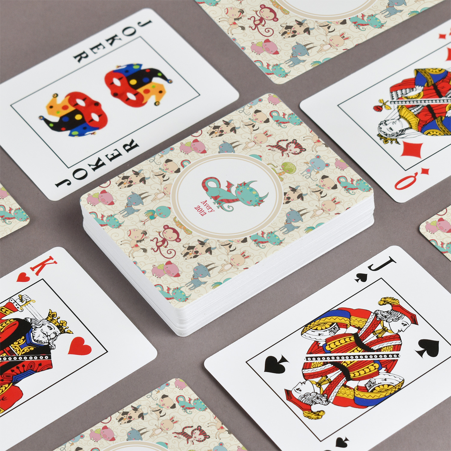 Our playing cards are perfect for family game nights or poker nights. A deck of customized playing cards ups the level of fun & entertainment to your game or poker nights. Imagine playing cards customized to match the theme of your game room, or game night, or that special event, or occasion with gambling tables!