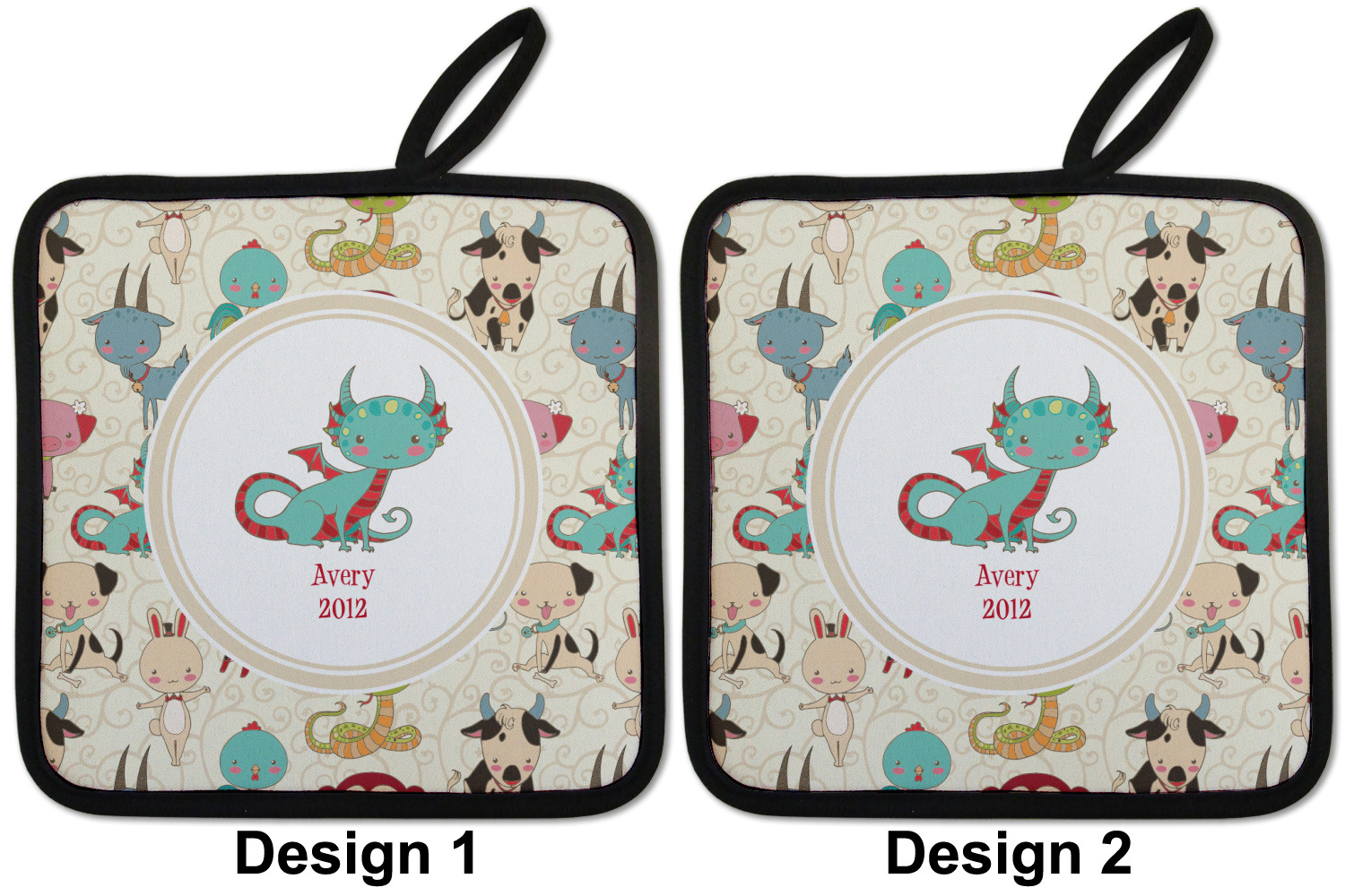 .We chose a round label with the child's name and year of birth for personalization in red and then paired it with the matching sign zodiac sign - which in this case is the dragon.