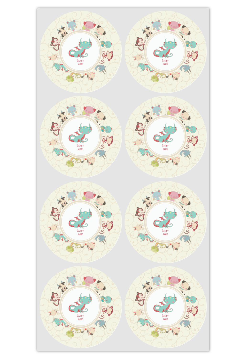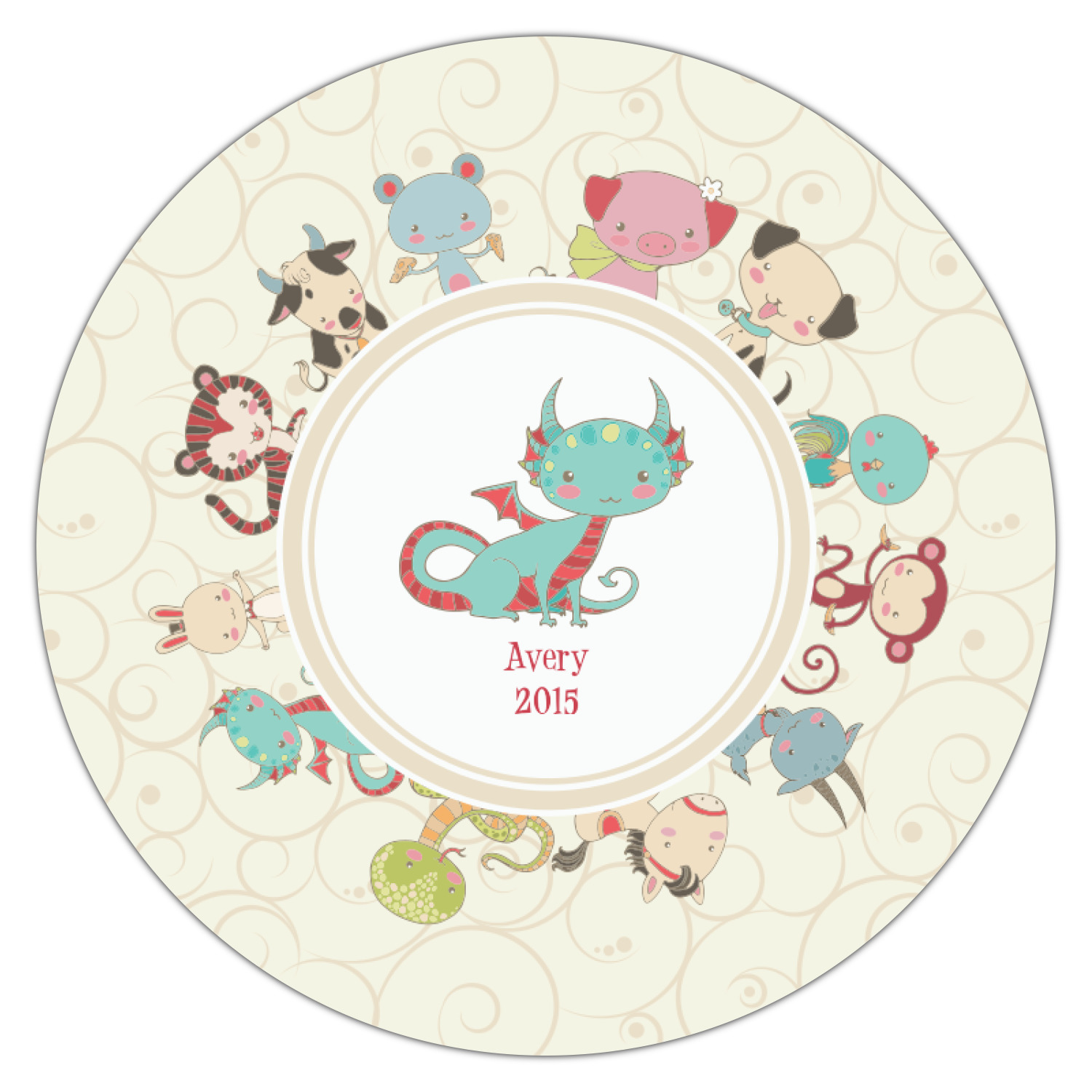 .We chose a round label with the child's name and year of birth for personalization in red and then paired it with the matching sign zodiac sign - which in this case is the dragon.