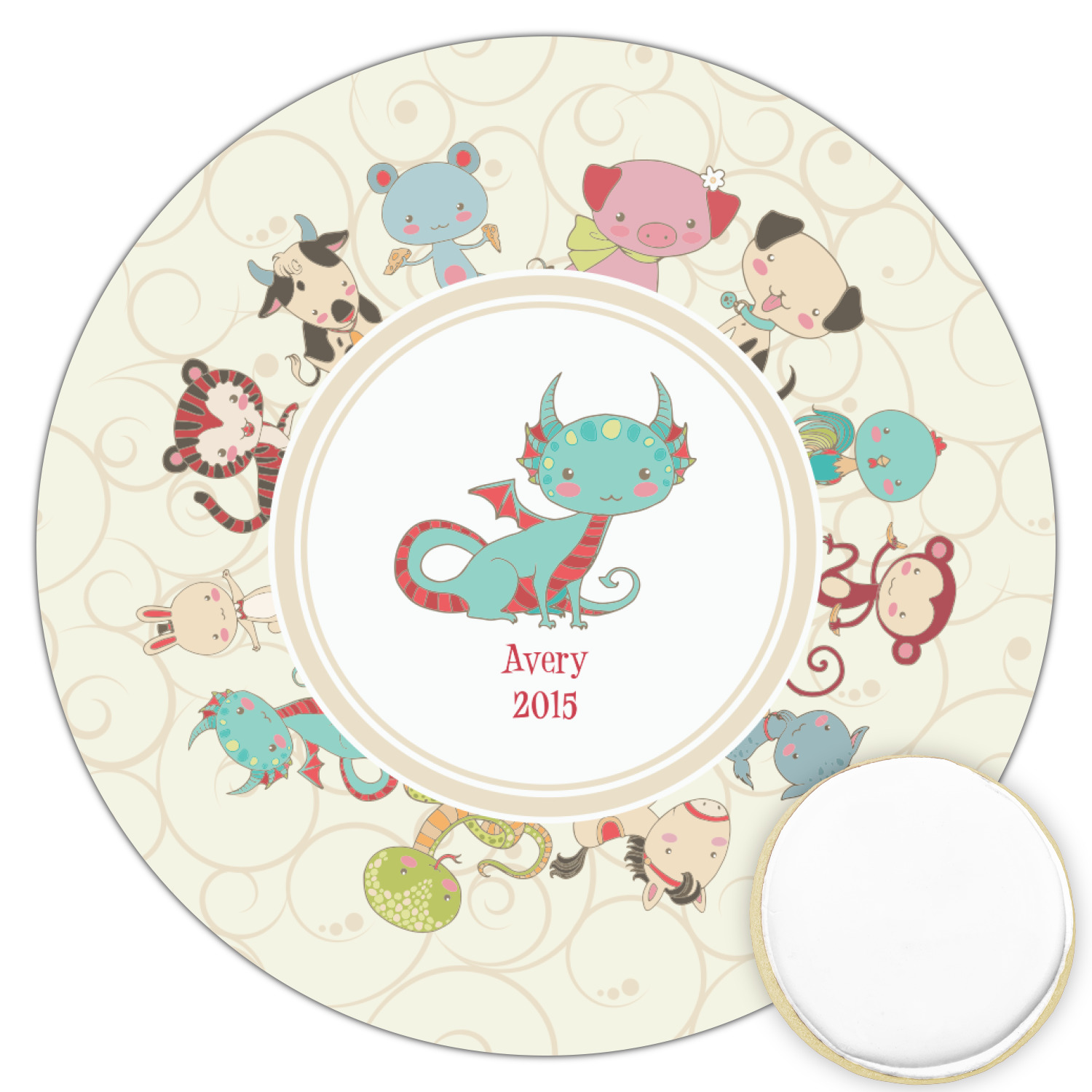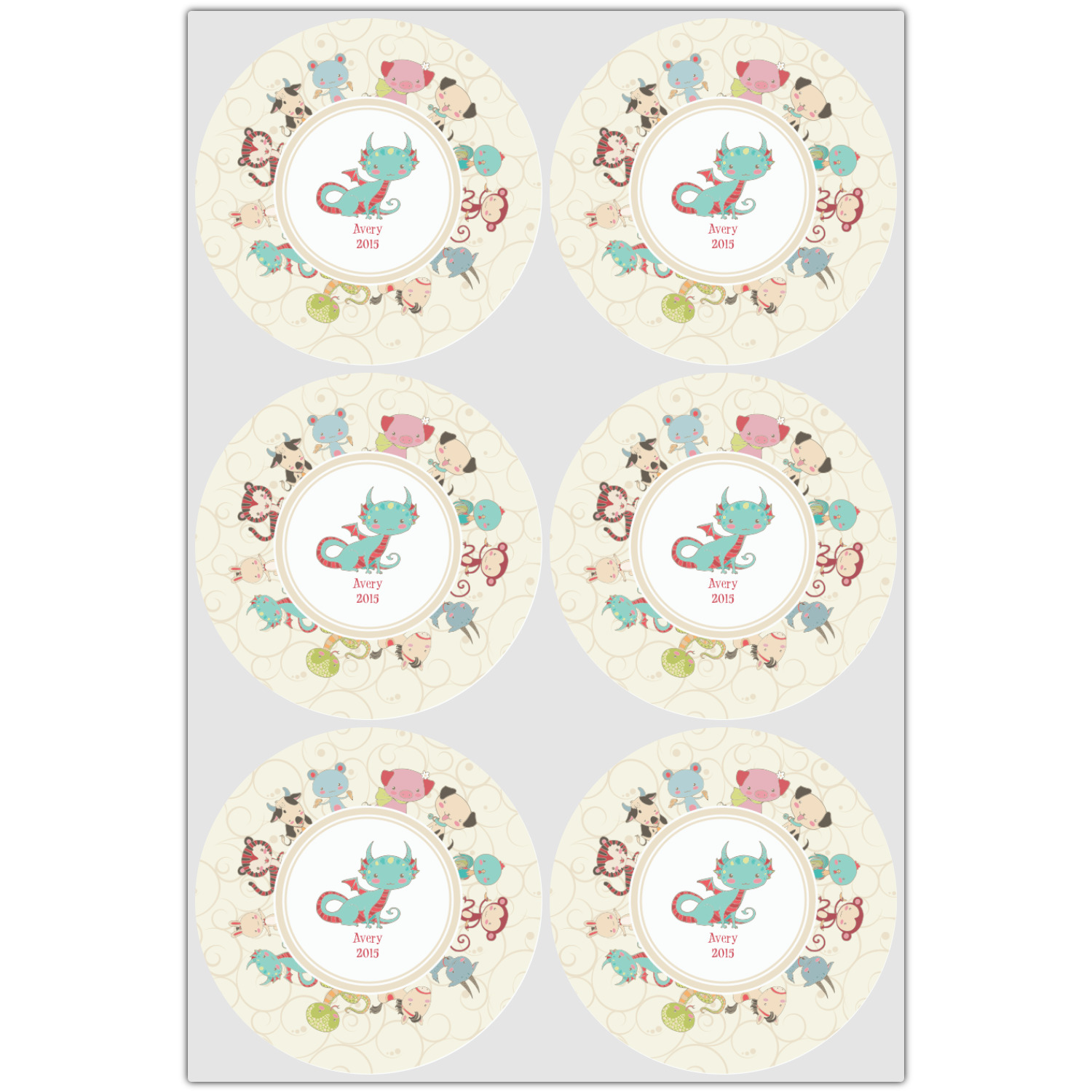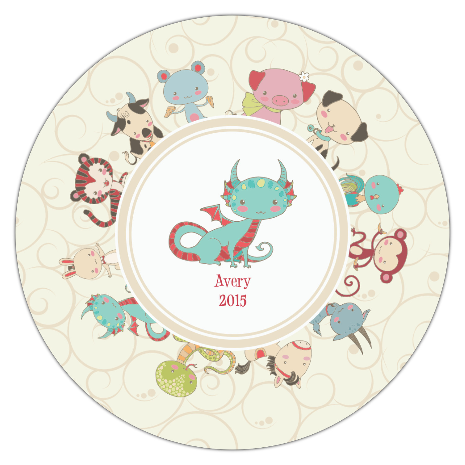 .We chose a round label with the child's name and year of birth for personalization in red and then paired it with the matching sign zodiac sign - which in this case is the dragon.